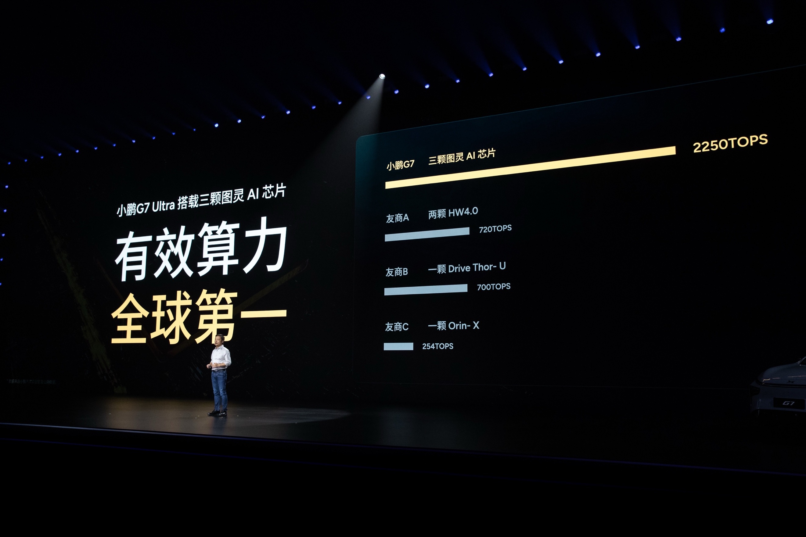小鹏G7 Ultra首发搭载3颗图灵AI芯片,是全球首颗同时应用在AI汽车、AI机器人、飞行汽车的芯片,并专为AI大模型定制,有效算力“一颗顶三颗”主流芯片。整车有效算力高达2250TOPS,跃居全球第一,是行业旗舰的3-28倍。此外,小鹏G7 Ultra实现了行业首次“一舱双旗舰芯”配置,全球首次增加座舱专属图灵AI芯片,智能座舱AI有效算力达800+TOPS,比行业旗舰车型大26倍。