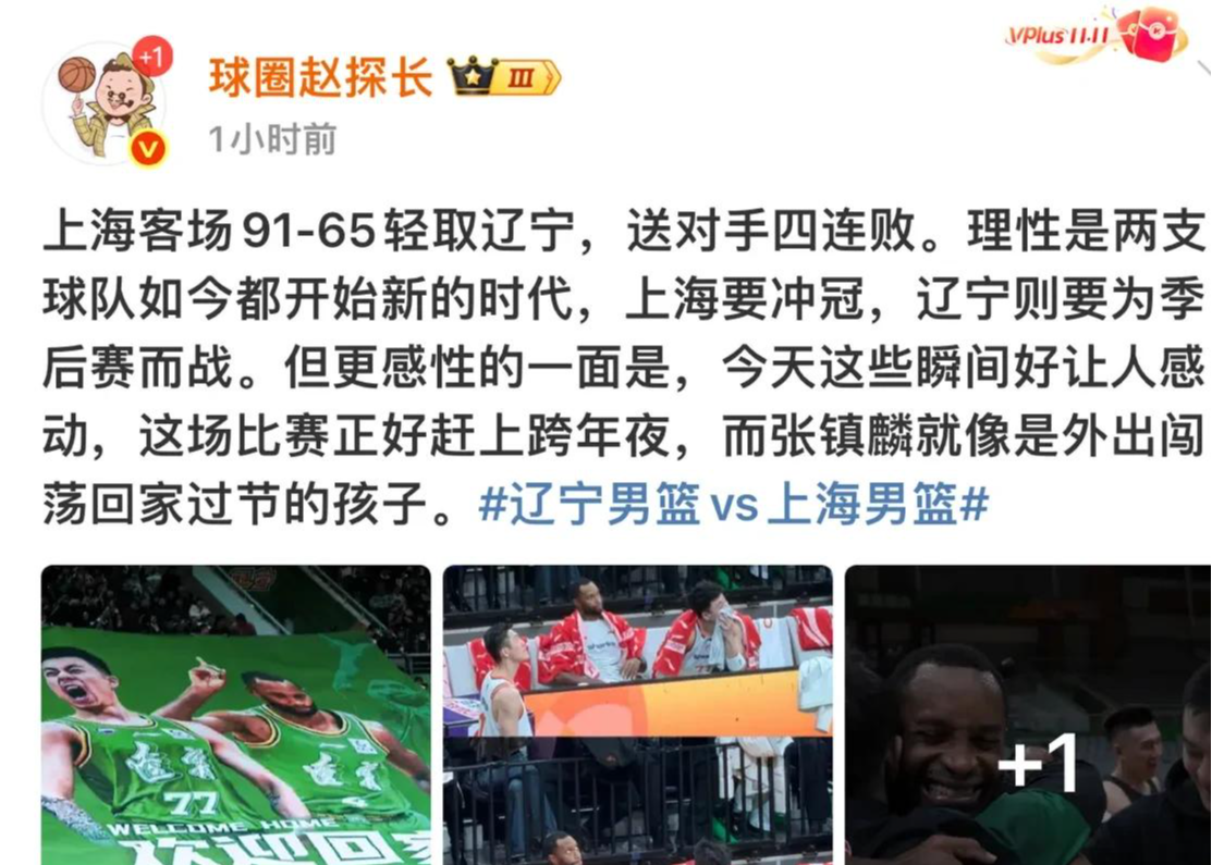 上海客场91:65轻取辽宁,送对手四连败。理性是两支球队如今都开启新的时代,上海要冲冠,辽宁则要为季后赛而战,但更感性的一面是今天这些瞬间。好让人感动,这场比赛正好赶上跨年夜,而张镇麟就像是外出闯荡回家过节的孩子。