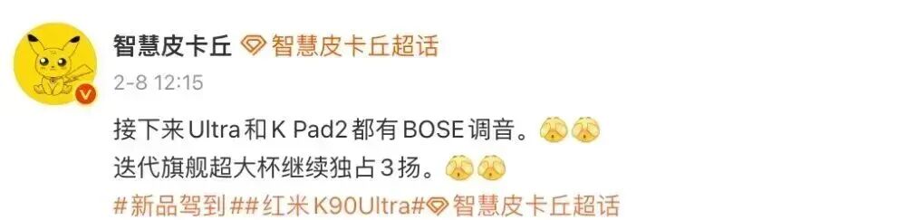 关于REDMI K90至尊版,目前已经出现了不少爆料。博主@智慧皮卡丘 最近的爆料显示,“接下来Ultra和K Pad2都有BOSE调音。迭代旗舰超大杯继续独占3扬。”