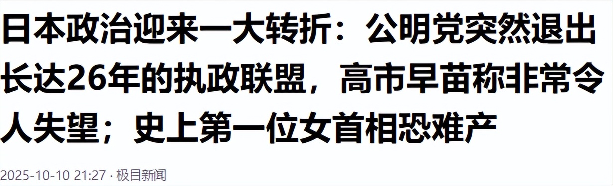 由于她那毫不掩饰的保守姿态,执政长达26年的老盟友公明党愤然出走,只留下一个巨大的权力真空。