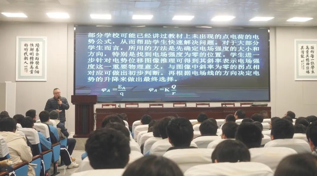 冬意渐浓,研学不辍。为助力高三学子精准把握高考物理备考方向,突破学习重难点,耒阳一中特邀长郡中学正高级教师、物理金牌教练刘辉老师于12月25日,在校杜甫讲堂举办高考物理专题提分讲座。部分学子现场聆听,其余学子在各班教室通过腾讯会议线上同步观看,共同开启一场聚焦核心考点、直击学习痛点的备考赋能之旅。