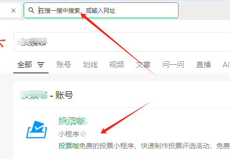 输入投票系统名称,在搜索结果中选择投票系统进入主页面。