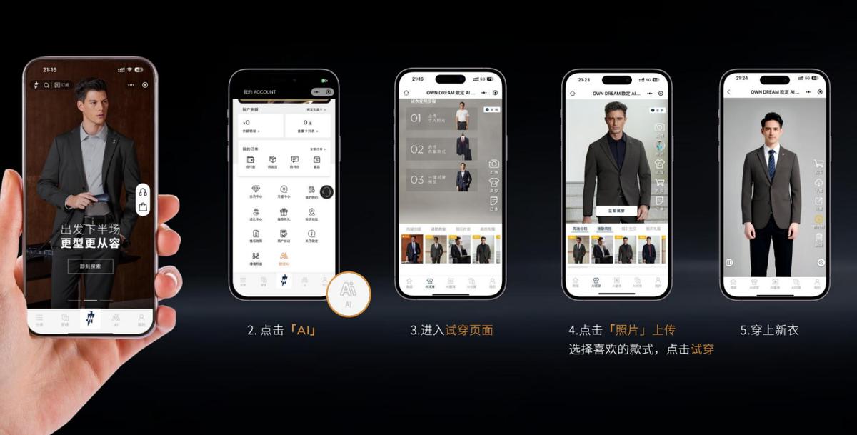 其次,以仿生科技与智能体验,重塑产品功能与消费决策。在解决合身问题后,欧定进一步通过技术创新产品内核与用户体验。为解决线上购物“无法试穿”、“不好搭配”等痛点,欧定推出AI试衣功能。基于庞大的体型数据库,用户上传个人照片,即可通过多模态识别与3D建模技术,生成高保真甚至不同场景下的动态试穿视频。这实现从“看见”到“穿上”的1:1还原,提升选购的确定性与体验感。