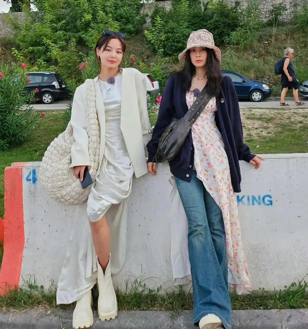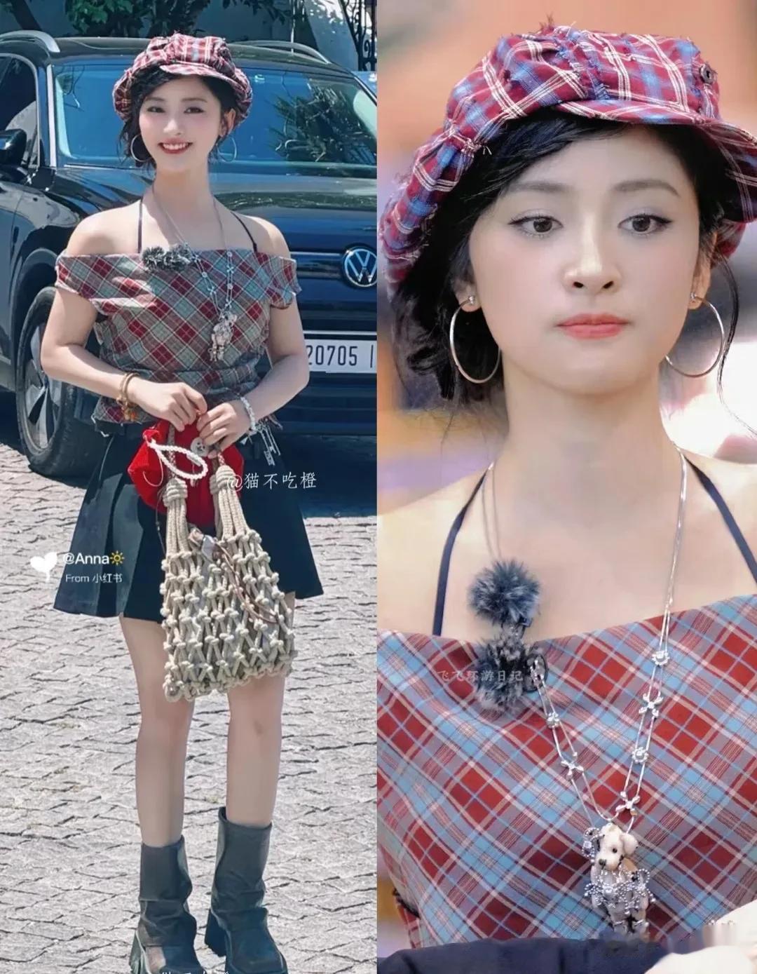 比起白鹿的叠加牛仔外套显得土气,赵露思的“裙子➕裤子”穿搭就休闲明媚太多。