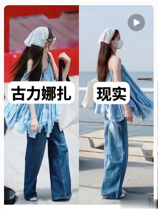 还有在《旅行任意门》中一条蓝色a字仙裙搭配牛仔裤,美貌征服全网的娜扎,直接带火这条蓝色仙裙。