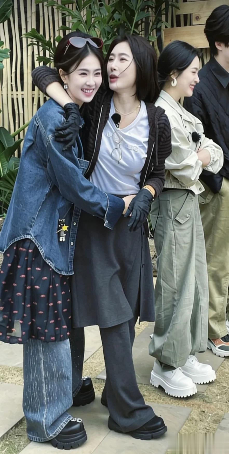 同样“裙子➕裤子”穿搭的还有秦岚,不过比起白鹿的小碎花,看着像一个围裙,比起白鹿的“土气感”,硬是多了几分做菜的氛围。