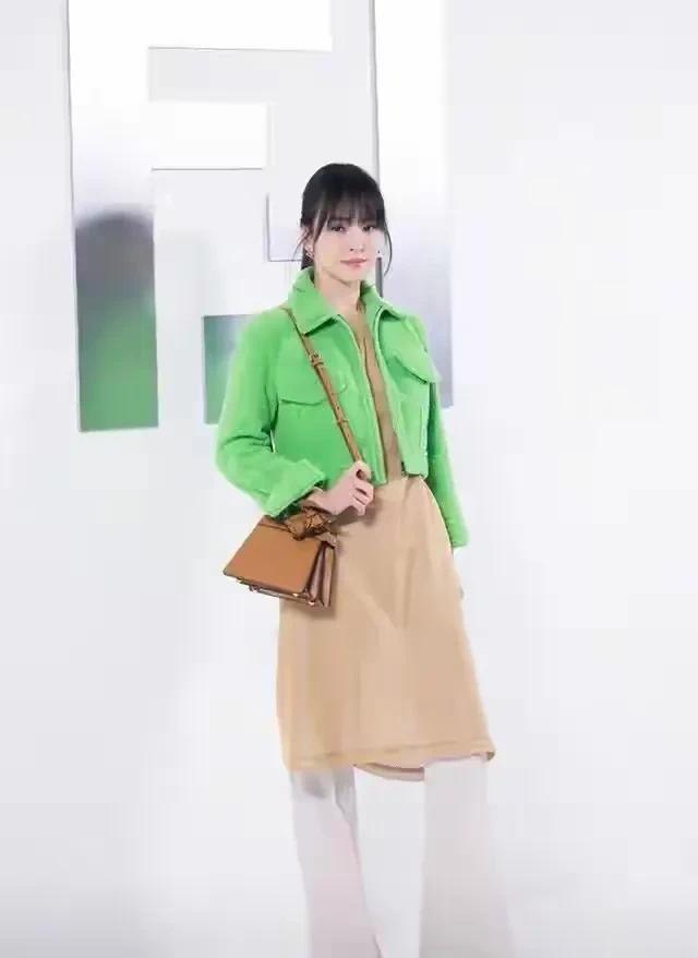 简单有型的穿搭还是不少小细节啊,同样修身针织裙,同色系的秦岚也比宋慧乔这一身绿色外套搭配黄色短裙配白色长裤显得协调时尚多了。
