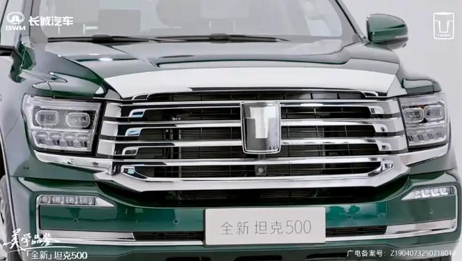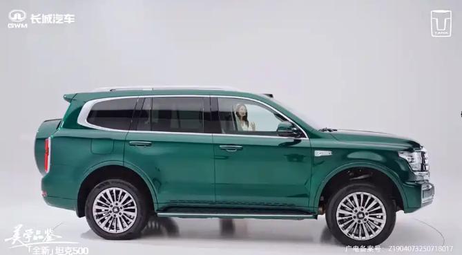 因为新车在外观方面的变化并不大,所以接下来我们就简单梳理一下坦克500 Hi4-Z的设计细节。首先,新车保留了辨识度出众的大尺寸横幅式镀铬进气格栅,车身颜色新增敦煌绿,灵感来自敦煌壁画中石绿矿颜料色泽,具有古色生香的味道。侧面基本无变化,主要变化集中在车顶和侧翼子板区域,新增包括激光雷达在内的驾驶辅助硬件,支持全场景NOA。尺寸上,新车长宽高对应5078x1934x1905mm,轴距2850mm,接近角29°,离去角24°,最小离地间隙210mm。