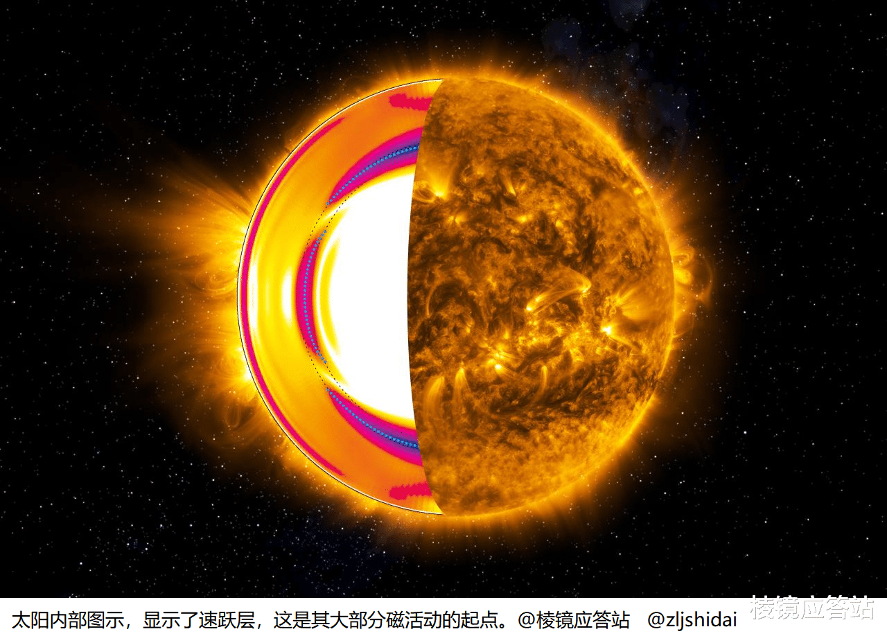 直到最近,那沸腾的海面才被科学家们透过眼睛,第一次清楚地确定了那驱动惊涛骇浪的“海底地震带。新泽西理工学院的研究团队在《科学报告》上宣布,他们找到了太阳风暴的引擎,就是一个藏在可见表面下面大概20万公里的、叫差旋层的极薄边界层