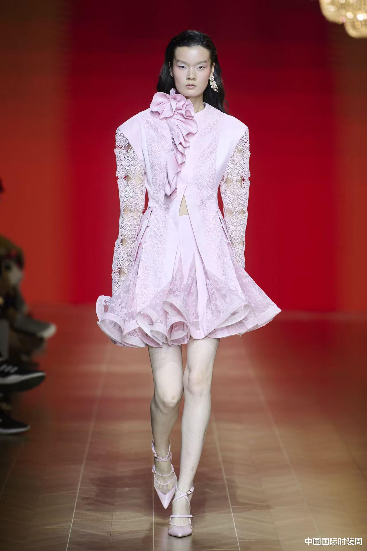 伴随着Cucurrucucu Paloma的旋律,华丽吊灯映照出古典浪漫的氛围,木质地板隐约散发出别样幽香。故事感倾泻而来,开启了品牌CHEN.1988多维的叙事重构。本季色彩不止服务于视觉,更接近情绪表达,陈龙以嫩粉、渐变、跳动的波感来构建全新的色彩谱系,脱胎又区别于之前的用色克制,理想之秋是沉淀于爆发之后的自由步调,为26春夏“腾挪”出让人暗赞的创作空间。