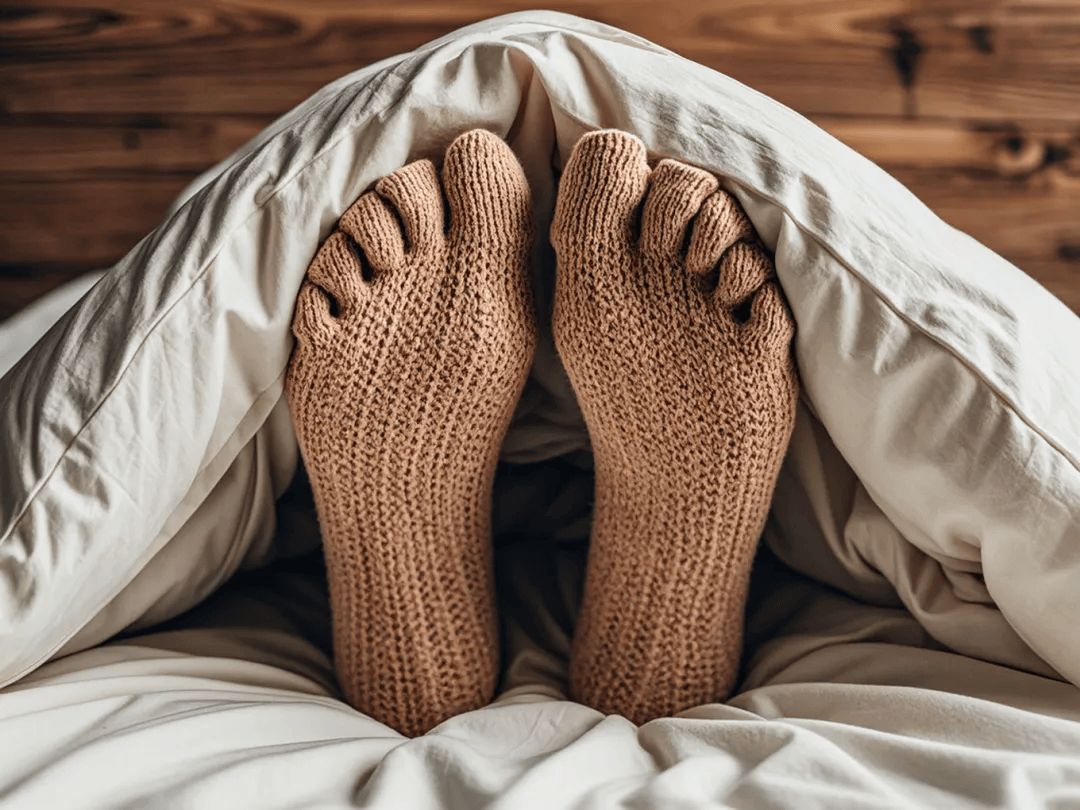 这背后的原理是,袜子能帮脚部维持温暖,促使血液循环加速,脚部暖和起来后,血管随之扩张,身体的热量就能更快地从核心区域散发到四肢,进而降低核心体温,为入睡按下 “加速键”。