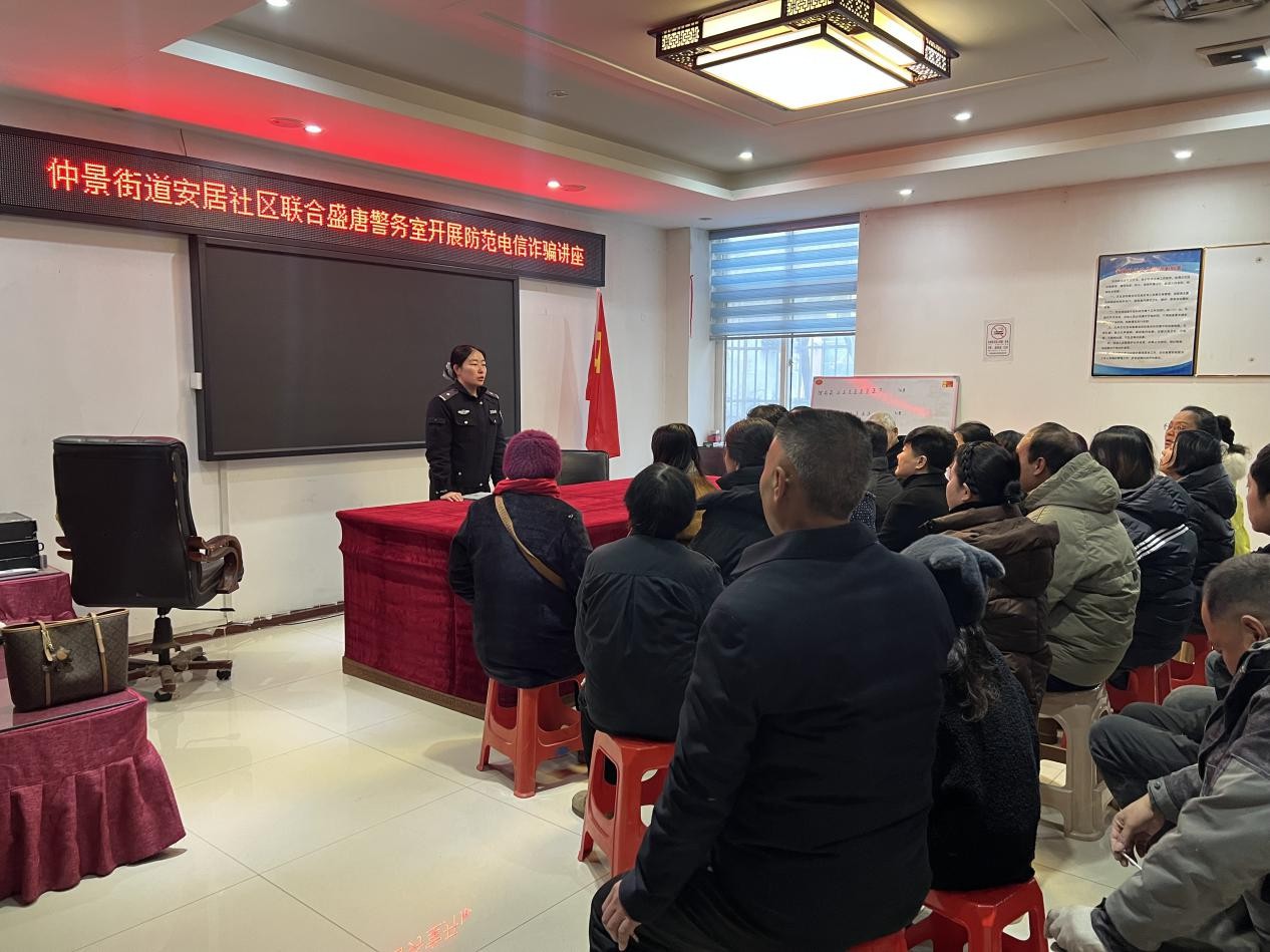 为切实提升辖区居民识骗、防骗、拒骗能力,全力遏制电信网络诈骗案件高发态势,1月8日,宛城区仲景街道安居社区联合仲景街道盛唐警务室,开展了一场防范电信网络诈骗专题讲座,为居民送上实用的反诈“干货”。