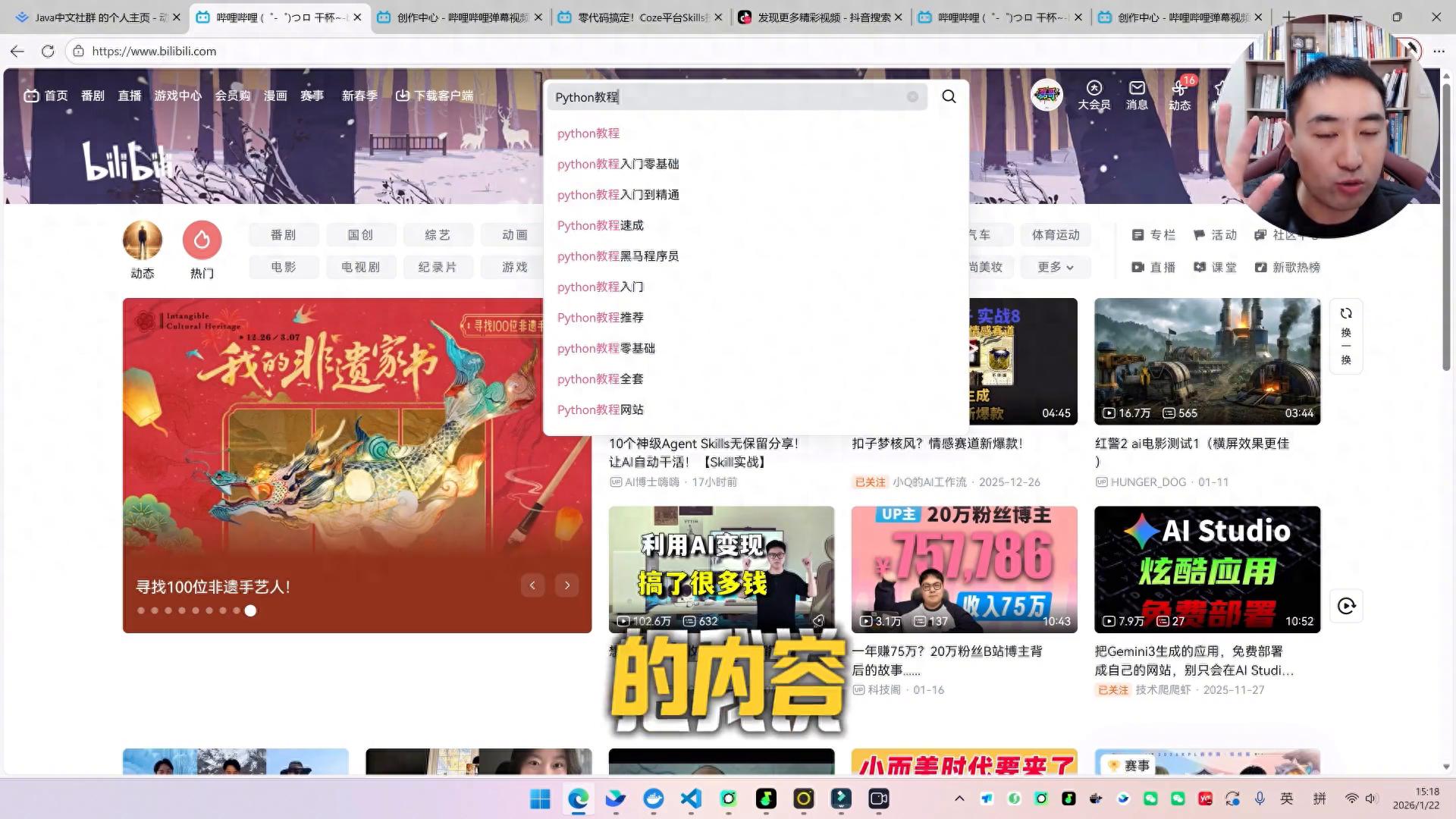 比如在某一个视频平台要去搜索想看的内容,这时候只需要告诉他就行了,比如python教程。大家看到了吧,我没有打字,只需要说话,他就会把我说的内容转换成文字,不但是在这个网站可以,所有电脑任何地方都可以。