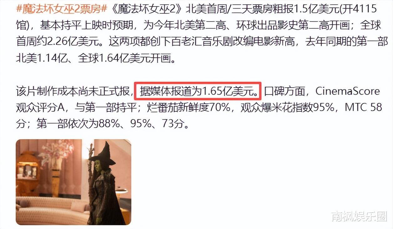 毕竟据媒体报道,《魔法坏女巫2》成本可是高达11.5亿。