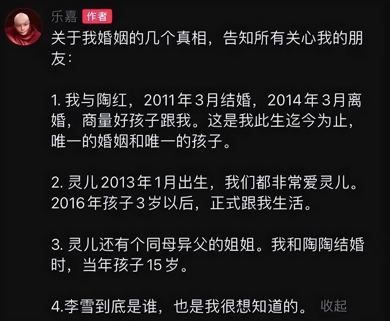 离婚后,女儿先跟着陶红去了美国,乐嘉留在国内,继续他的事业,研究中心的讲座和培训越来越多,他也偶尔在社交平台分享一些生活感悟。
