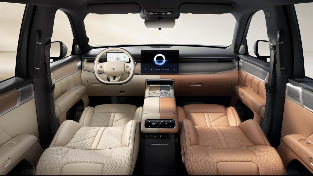 华境S以“温润科技之美”为设计理念,外观提供墨玉黑、羊脂白、玛瑙灰、琥珀蓝四种车色,更以智眸锐影前大灯、极光之翼尾灯、灵犀智慧灯营造流动光韵。内饰提供象牙米、檀香棕两种配色,以冰玉纹缝线、温雅竹韵雕饰、鎏金纹饰条构建沉浸式奢享座舱。