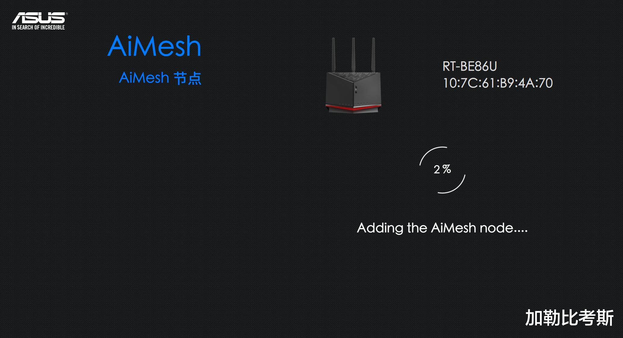 配置: 打开华硕路由器APP,它会自动发现华硕RT-BE86U,点击“添加为AiMesh节点”,等待几分钟,组网自动完成。