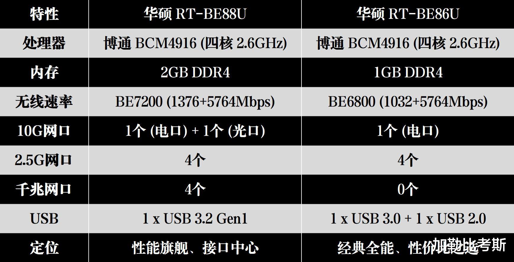 如果你是大平层、别墅用户,同时拥有NAS、电竞PC等有线设备,追求极致性能,那么完全可以考虑主路由器为华硕RT-BE88U或者华硕RT-BE86U,两者性能几乎一致。