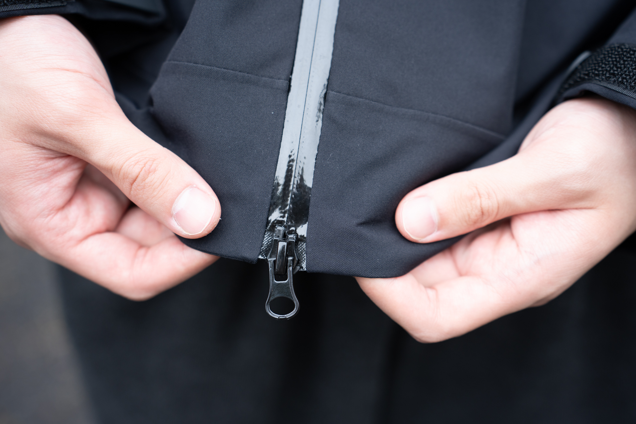 防水性是冲锋衣的核心指标,VBREX 这款冲锋衣拥有 35000mm 暴雨级防水指数,我们将水龙头水流直接对着衣服冲淋,水珠瞬间在面料表面成珠滚落,无任何渗透痕迹。全缝隙 EP 无渗透三层压胶、高压冲胶工艺搭配 SOPE-AIR 涂层黑科技,从面料到接缝全方位锁水,暴雨级防水名副其实。