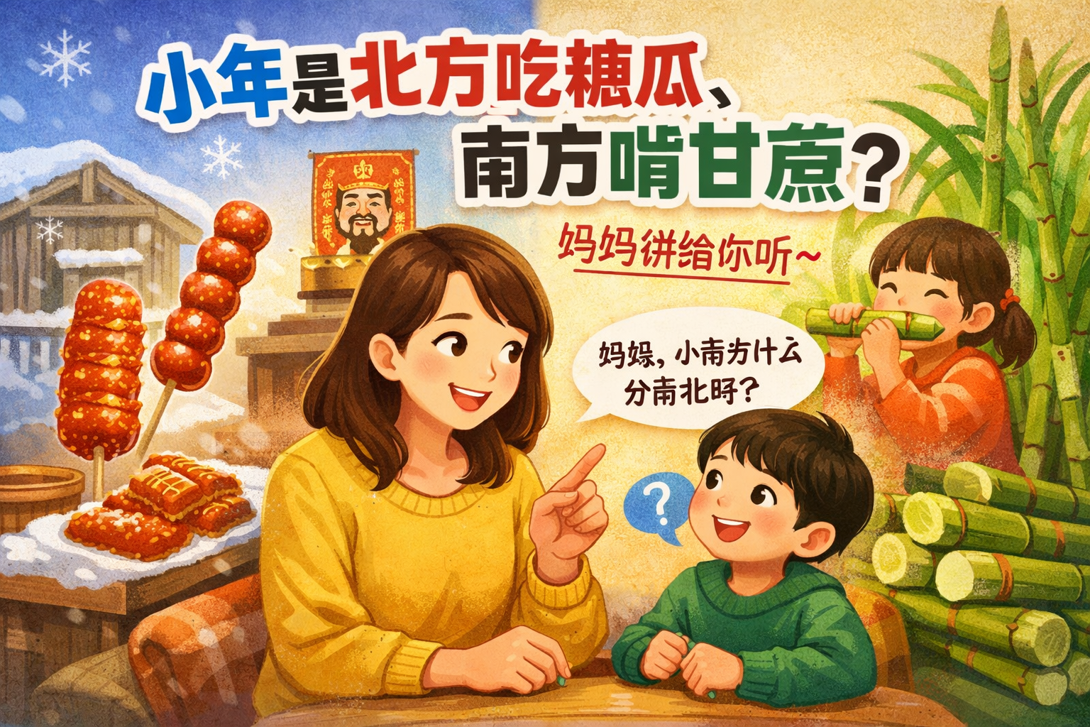“爸爸妈妈,小年不是全国一起过的吗?怎么还分南北?”