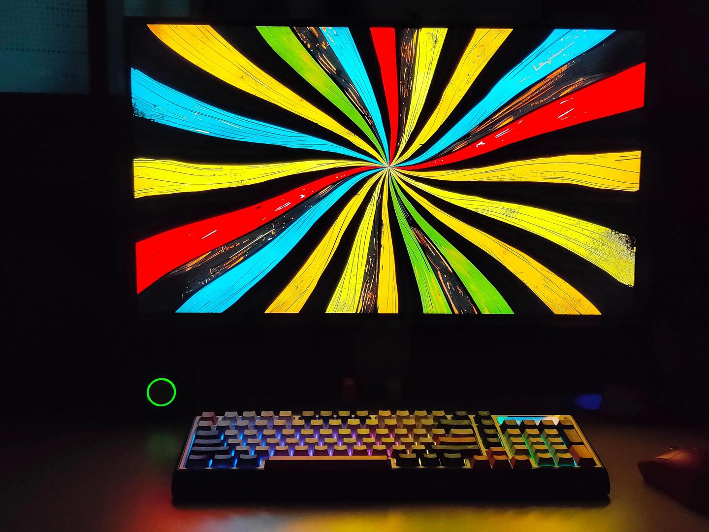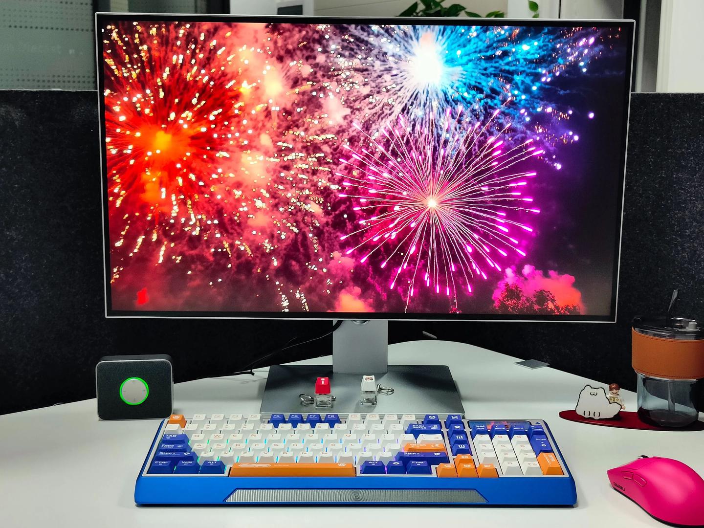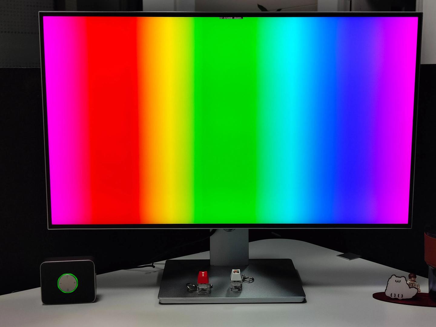 显示器还支持 8 抖 10Bit 色深,看渐变图的时候特别明显 —— 之前旧屏看从浅粉到深粉的过渡,会有明显的色块断层,这台屏就特别顺滑,颜色一点一点晕开,顺滑过渡。