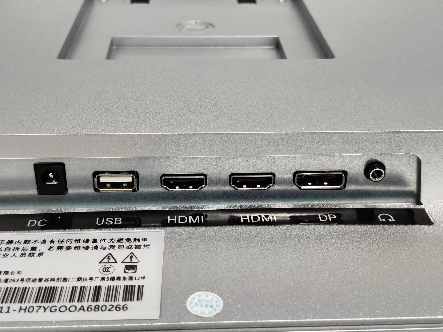 显示器的接口采用了隐藏式设计,都在屏幕背面的凹槽里,能工位桌面能保持干净。配备了2×HDMI 、 DP 、USB和3.5mm 音频口。多接口设计,更好的应对用户使用不同设备的需求,外接笔记本、游戏主机等设备时无需拔线切换,省时省力。
