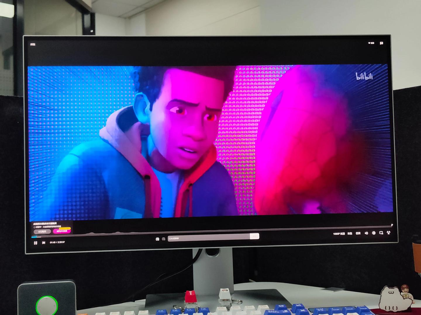 27 寸大屏 + 窄边框,看电影的时候沉浸感特别强,就像在小影院一样。而且色彩还原准,看《蜘蛛侠:平行宇宙》这种撞色多的动画,红、蓝、紫的色彩分得清清楚楚,鲜艳但不刺眼,加班的疲惫都少了一半。