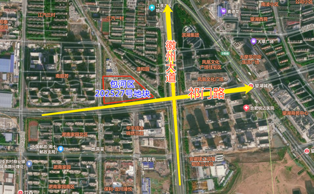 地块位于包河政务东板块,地理位置优越,临近绿地大融城、环宇天地、华润万象城等大型商业综合体,另外项目西侧不远处即是四川邦泰璟和朗月、意禾橙庐、天阜壹号等新房。