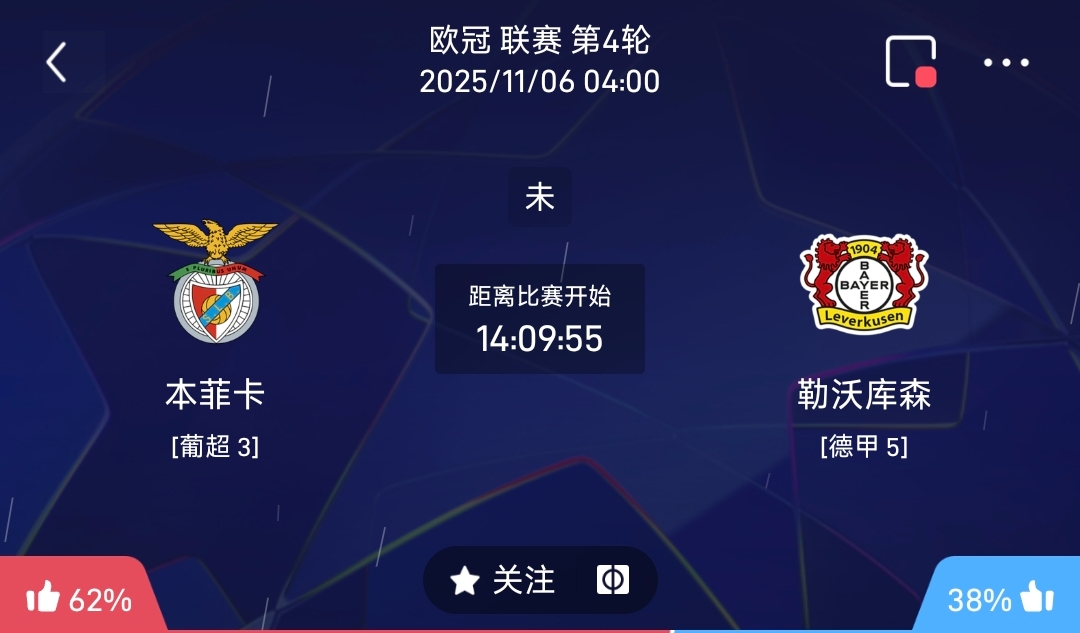 现在本菲卡和勒沃库森都急需积分,希望我们的主场球迷能给对方足够的压力,我认为本菲卡能赢下这场球。