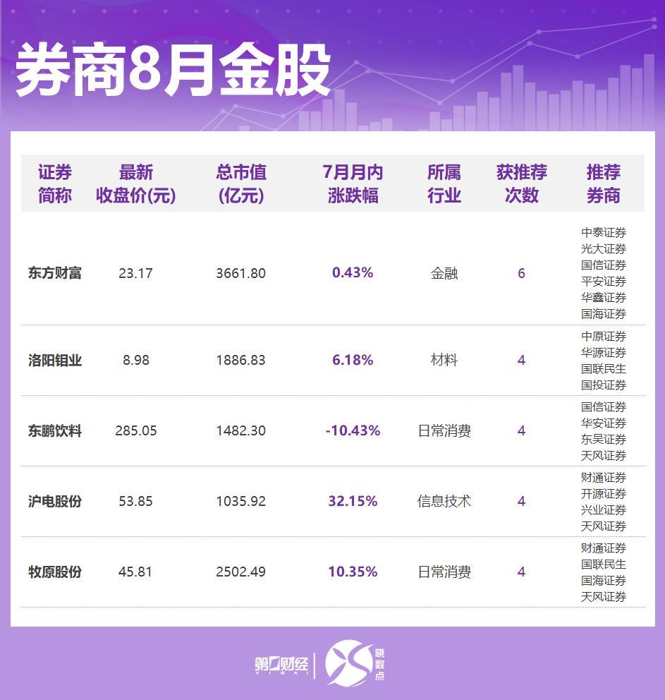 今天一起看几家券商推荐次数靠前的“金股”“含金量”如何。另外,我们收集了6家券商对8月策略和金股推荐的研报原文,有需要的可以找主任领取。(下图是前两天的统计数据)