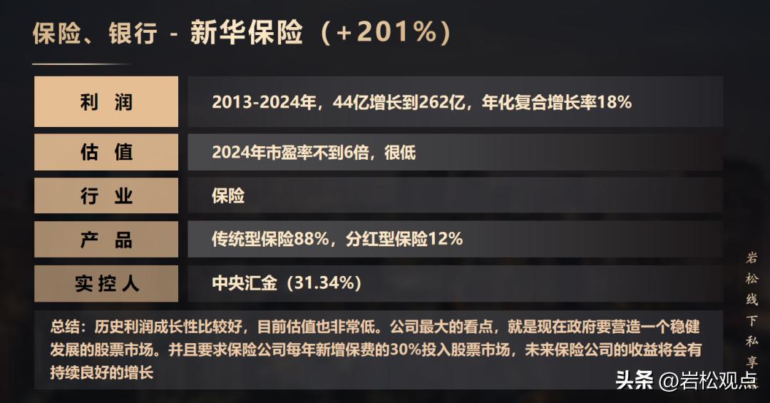 目前来说,保险股的整体投资逻辑依然是在的,虽然股价已经接近翻倍,新华保险H股和中国人寿H股现在都只有5倍左右的市盈率,利率下行趋势下,保险股高股息高分红的特点依然受到低风险偏好资金的偏爱。