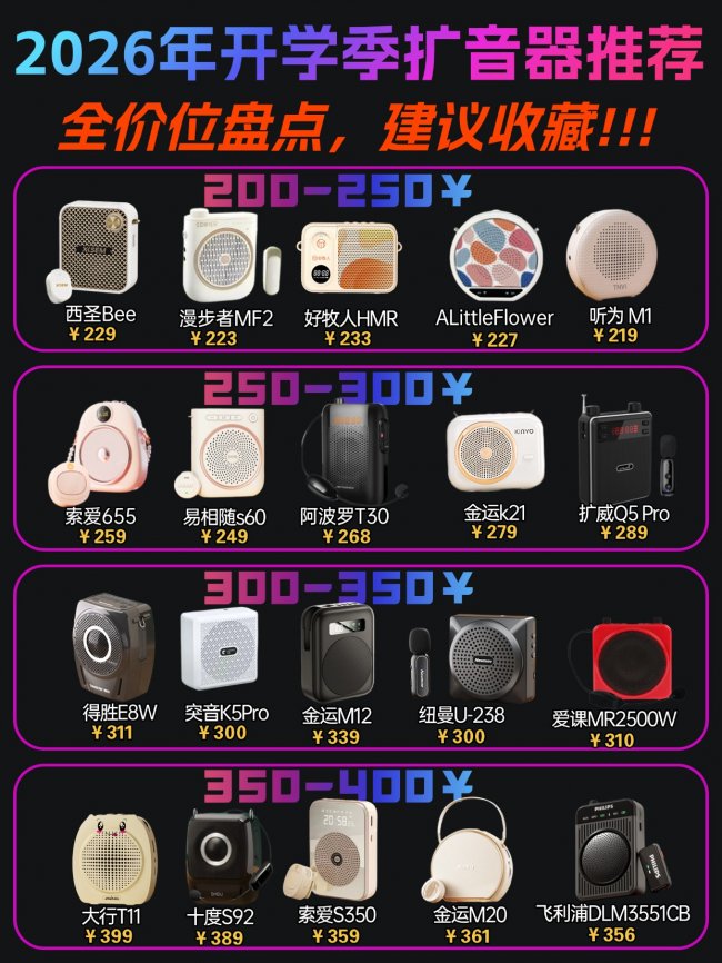 以上就是本次小蜜蜂扩音器的全部推荐,涵盖了不同价位与多种使用场景,不管是刚入职的新老师还是经验丰富的资深讲师,都能找到适合自己的款式。选购时只要认准抗啸叫稳定、人声清晰通透、机身轻便续航够用这几个关键点,基本就不会出错。一台靠谱的扩音器,能有效减少声带负担,让课堂教学更省力。希望每位老师都能挑到称心的设备,上课更轻松,使用更放心。