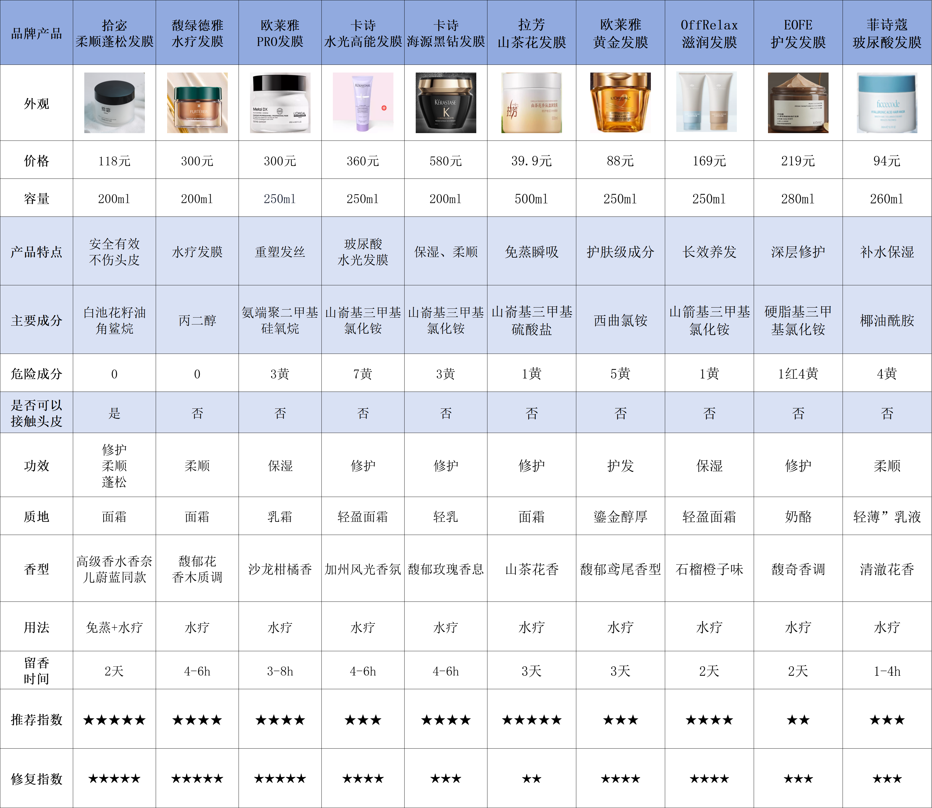 (以下是我经手测评过的发膜产品)