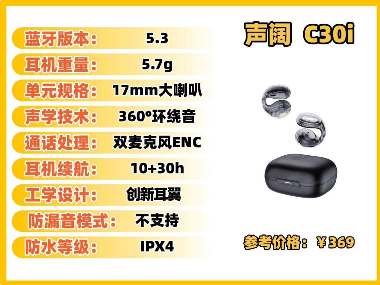 推荐理由: 500元以下音质最出色的耳夹式耳机,常年入选性价比TOP10排行榜