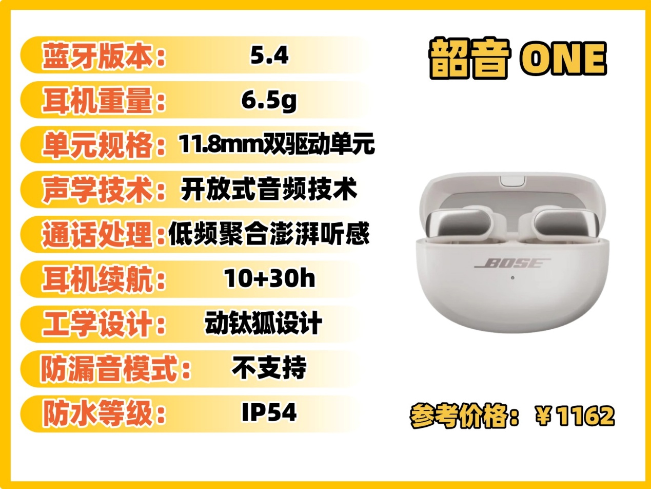 耳机上手第一感觉就是很轻,仅有5.2g,它有着自家研发的“云朵气囊”科技支持,可以实现长时间的佩戴需求,音质上使用的是12mm复合高灵敏度单元,音质体验很不错,声音清晰透亮,各个频段的平衡度把控的很不错,性能上还采用了蓝牙5.4芯片,连接速度又快又稳,续航挺不错的,达到了40个小时,防水保护很强,支持IPX7级别的效果,喜欢运动的可以入手一台!