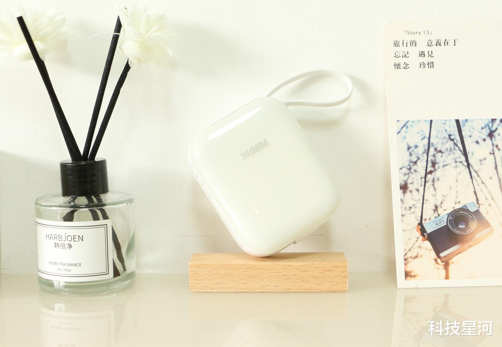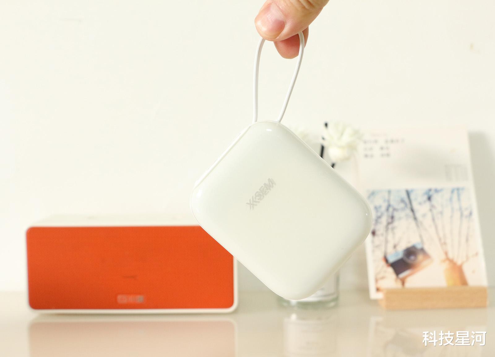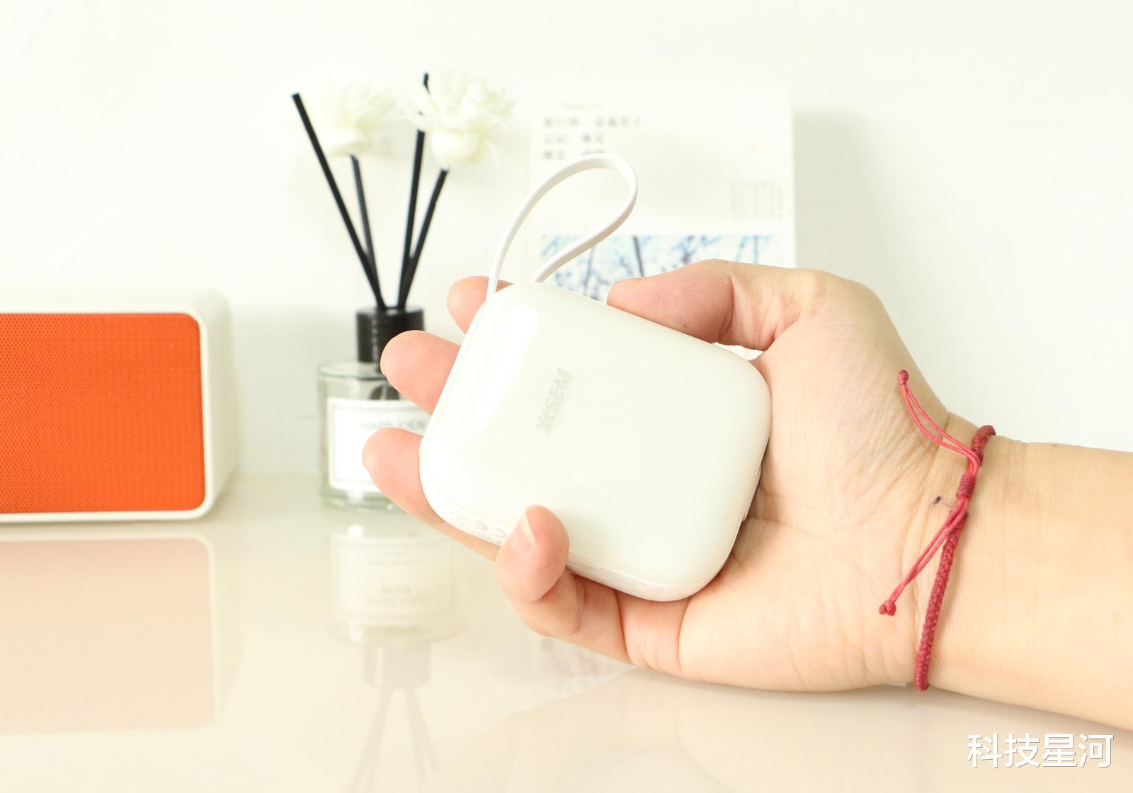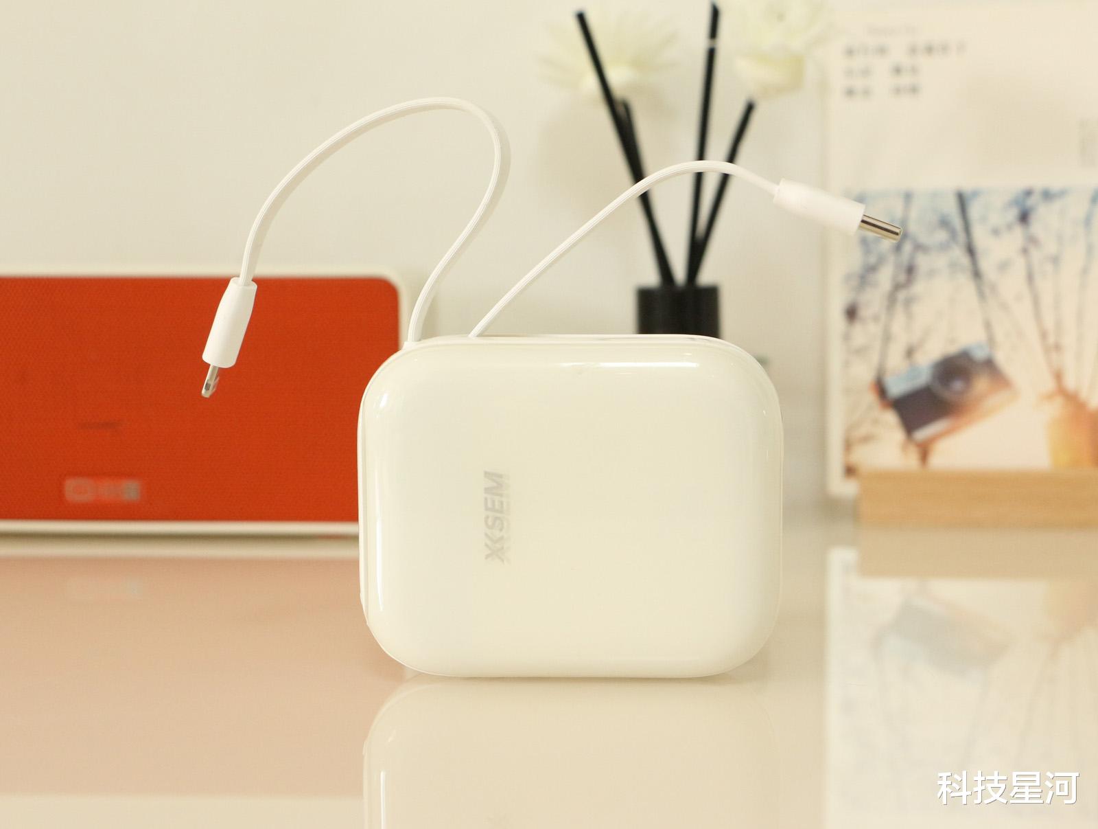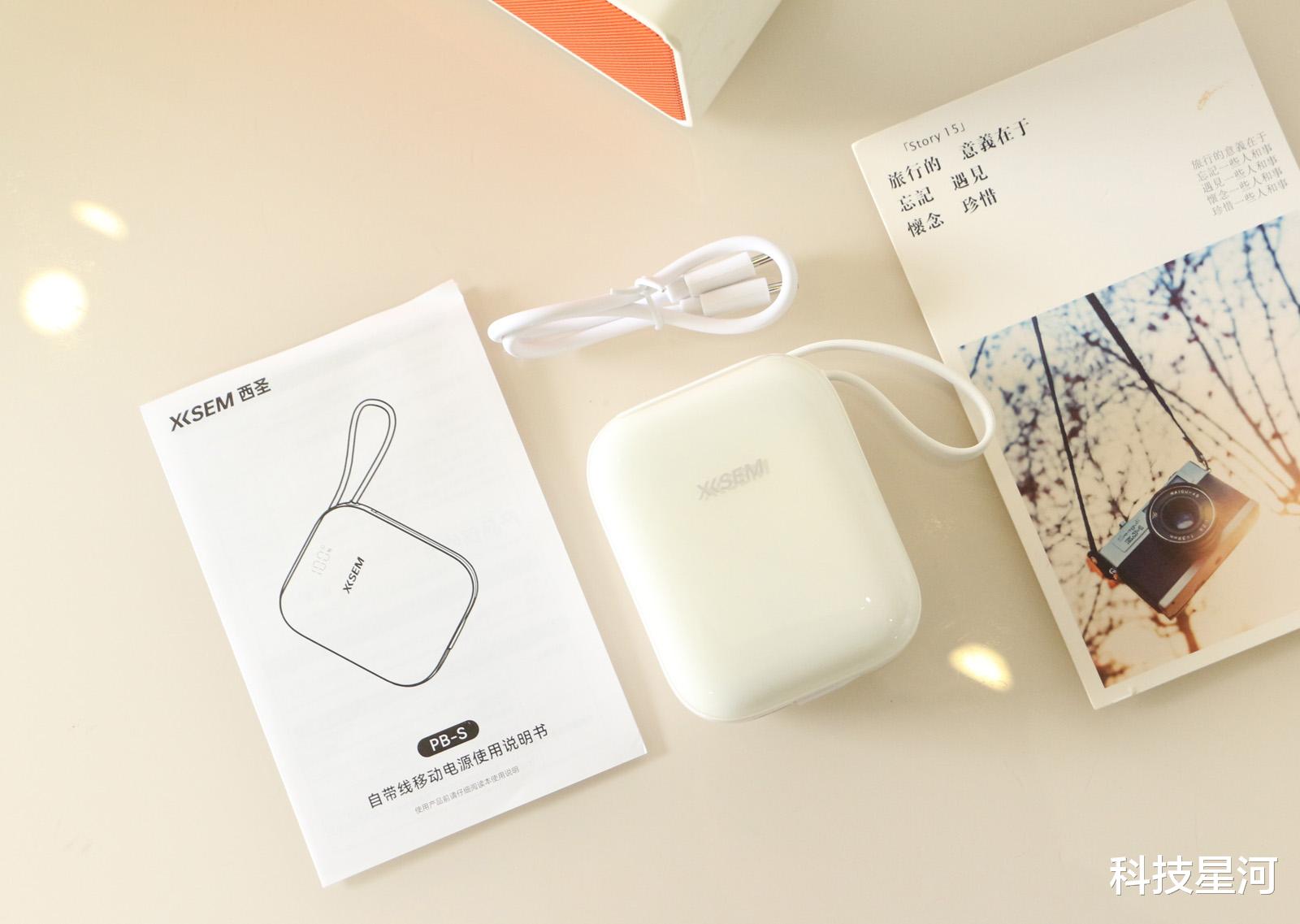 西圣PB-S自带线移动电源小巧精致、自带双线,省心便捷,10000mAh扎实容量,随时补电,即使在外面浪一整天,依然手机依然电量满满。