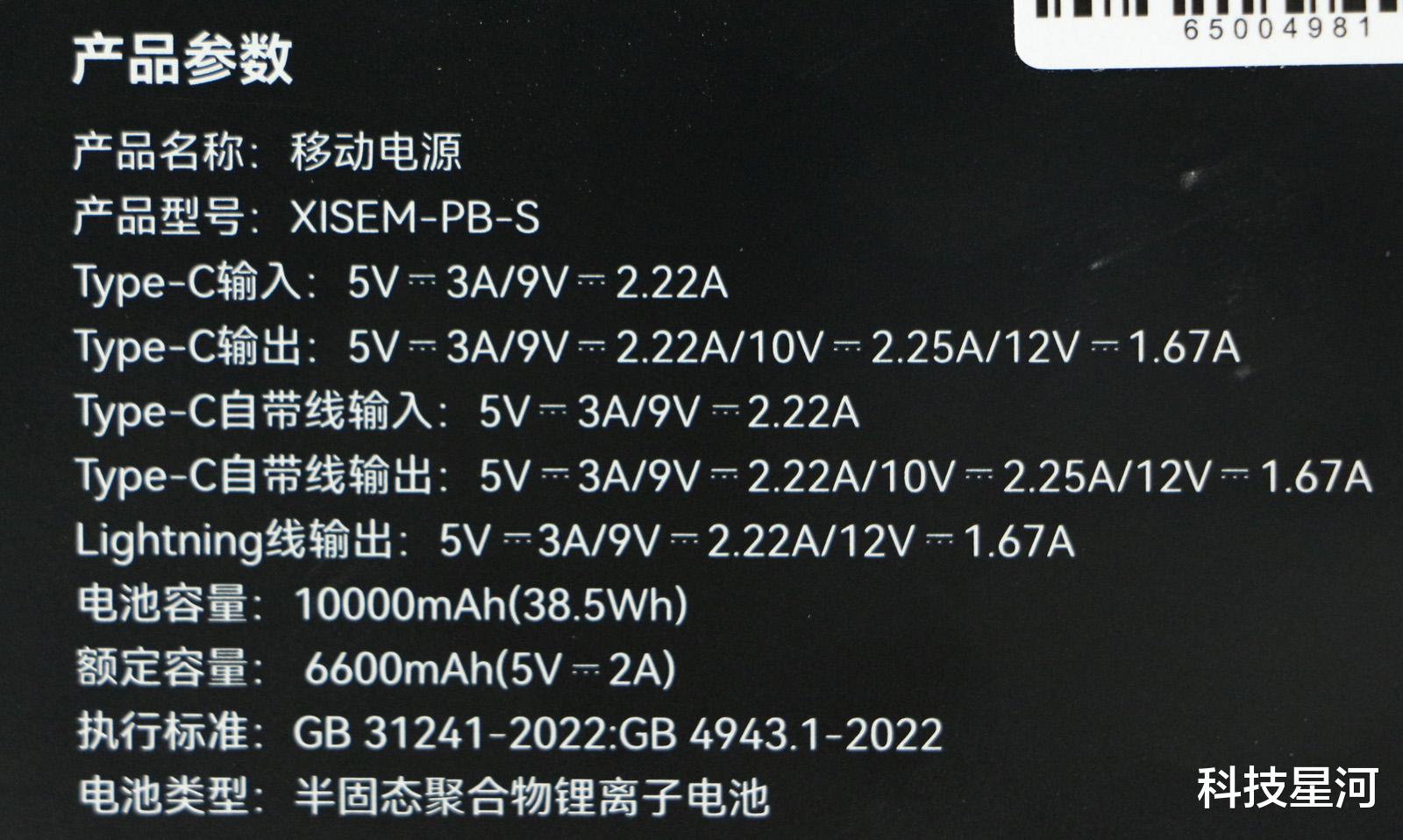 和传统锂电池充电宝相比,西圣PB-S内置的是新一代半固态电池(新能源汽车同源电池)、电池容量为10000mAh/37Wh。