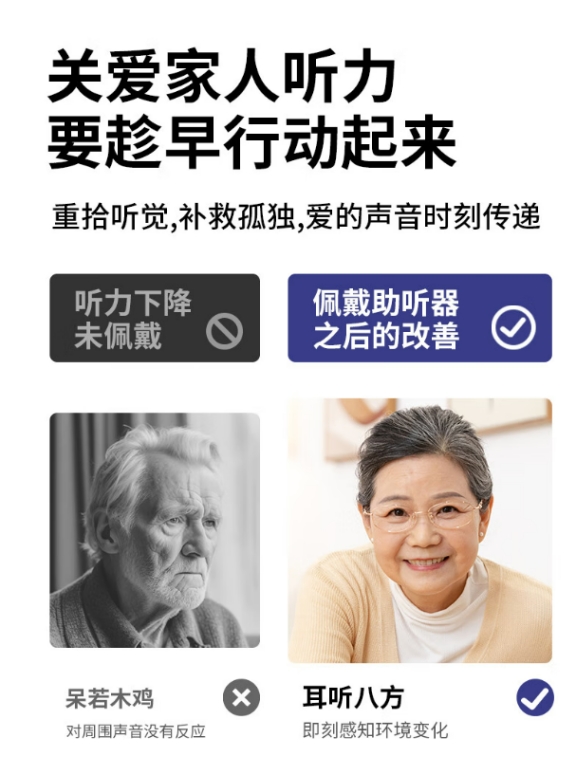 说到这,我脑海里马上跳出来我叔叔的场景。那段时间他总听不清,家里叫他,他八成是“嗯?”、“啥?”三连。最夸张的一次是我们吃饭叫他来上桌,他愣是完全没听见,坐在沙发上看电视看得特别投入。我们全家站在饭桌前互相对视,差点笑出声。后来给他选了个助听器,他第一天戴上就说“你们说话原来这么清楚啊”,还开玩笑说之前像在猜谜。整个氛围瞬间轻松了很多。