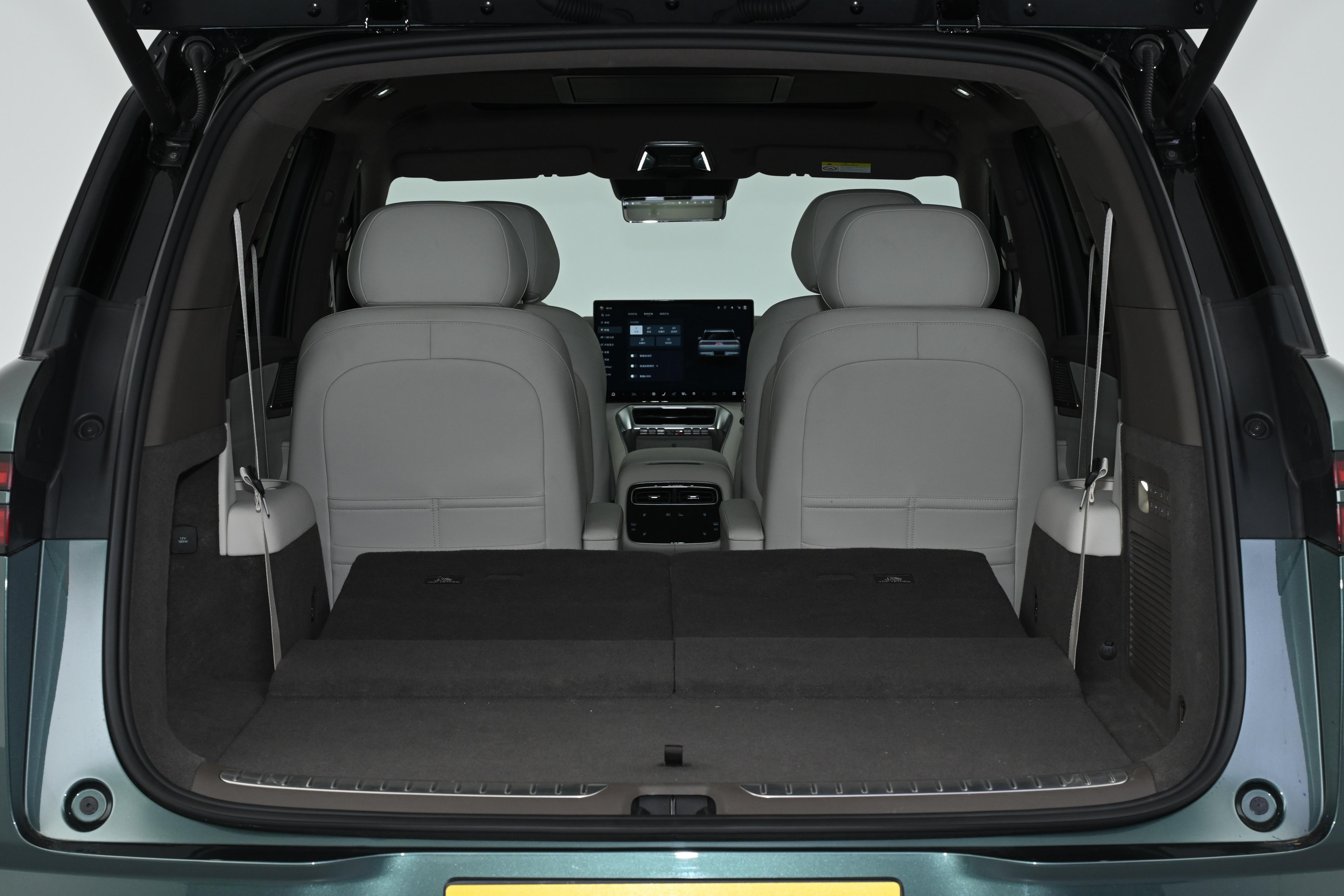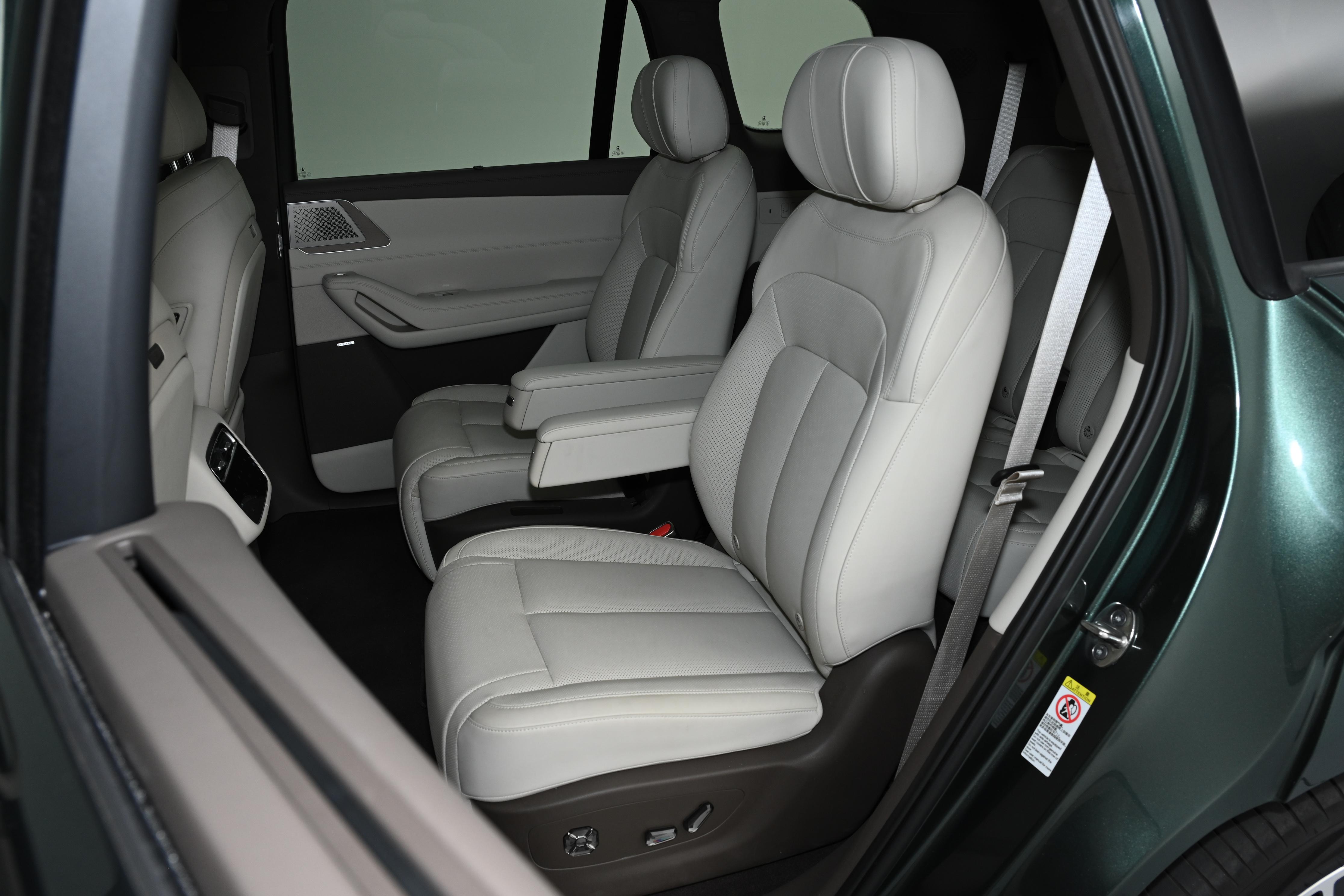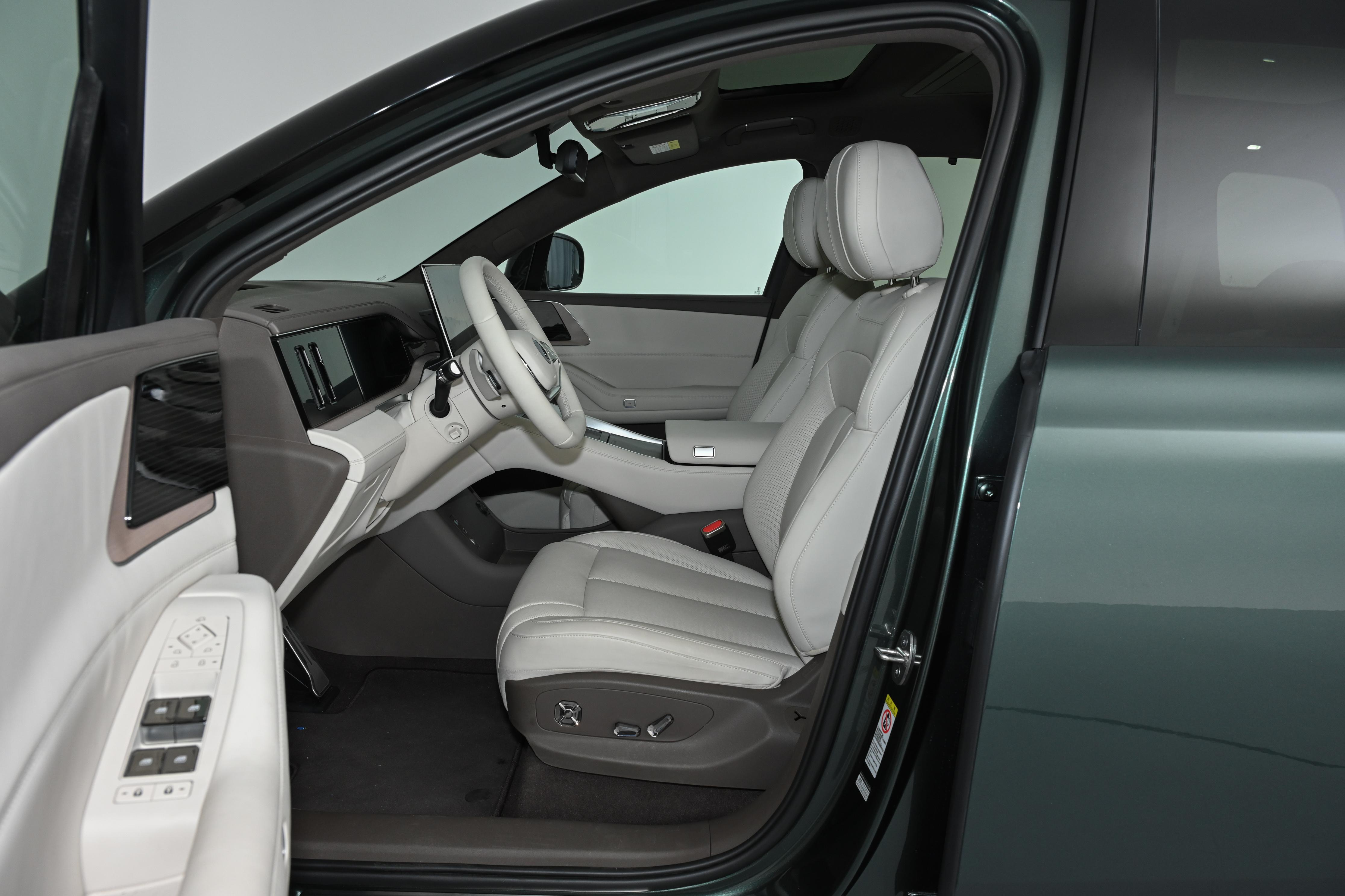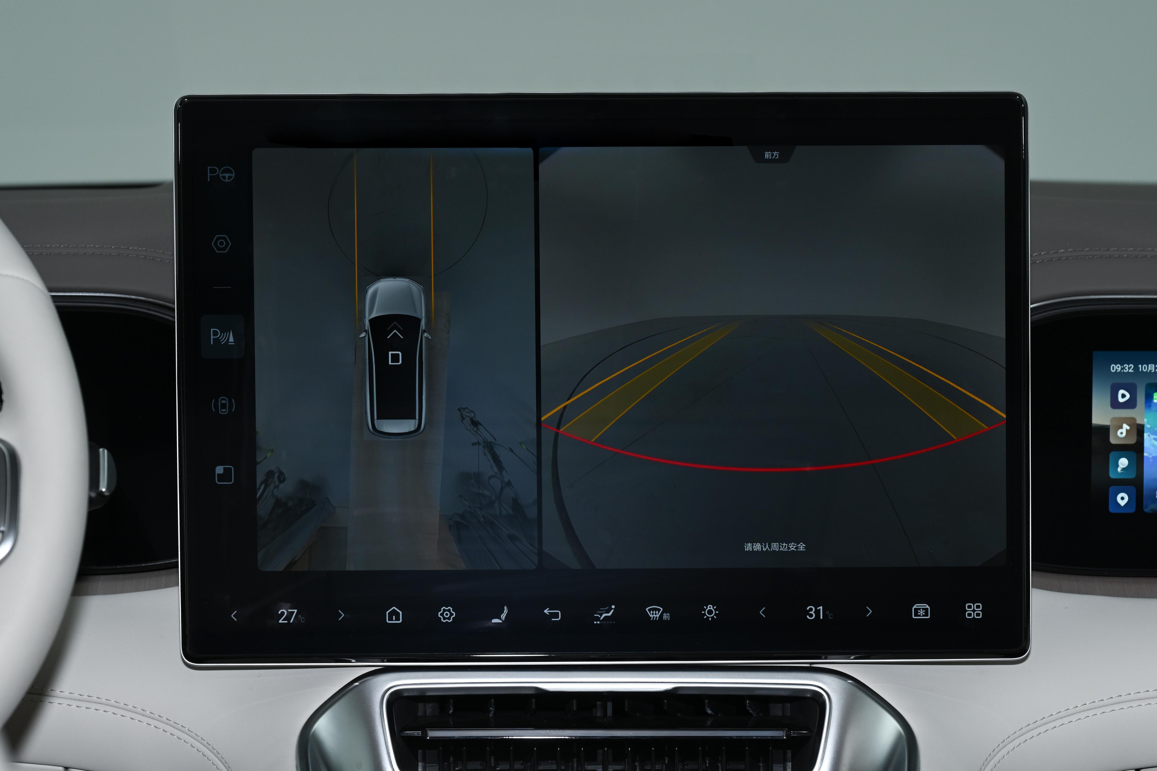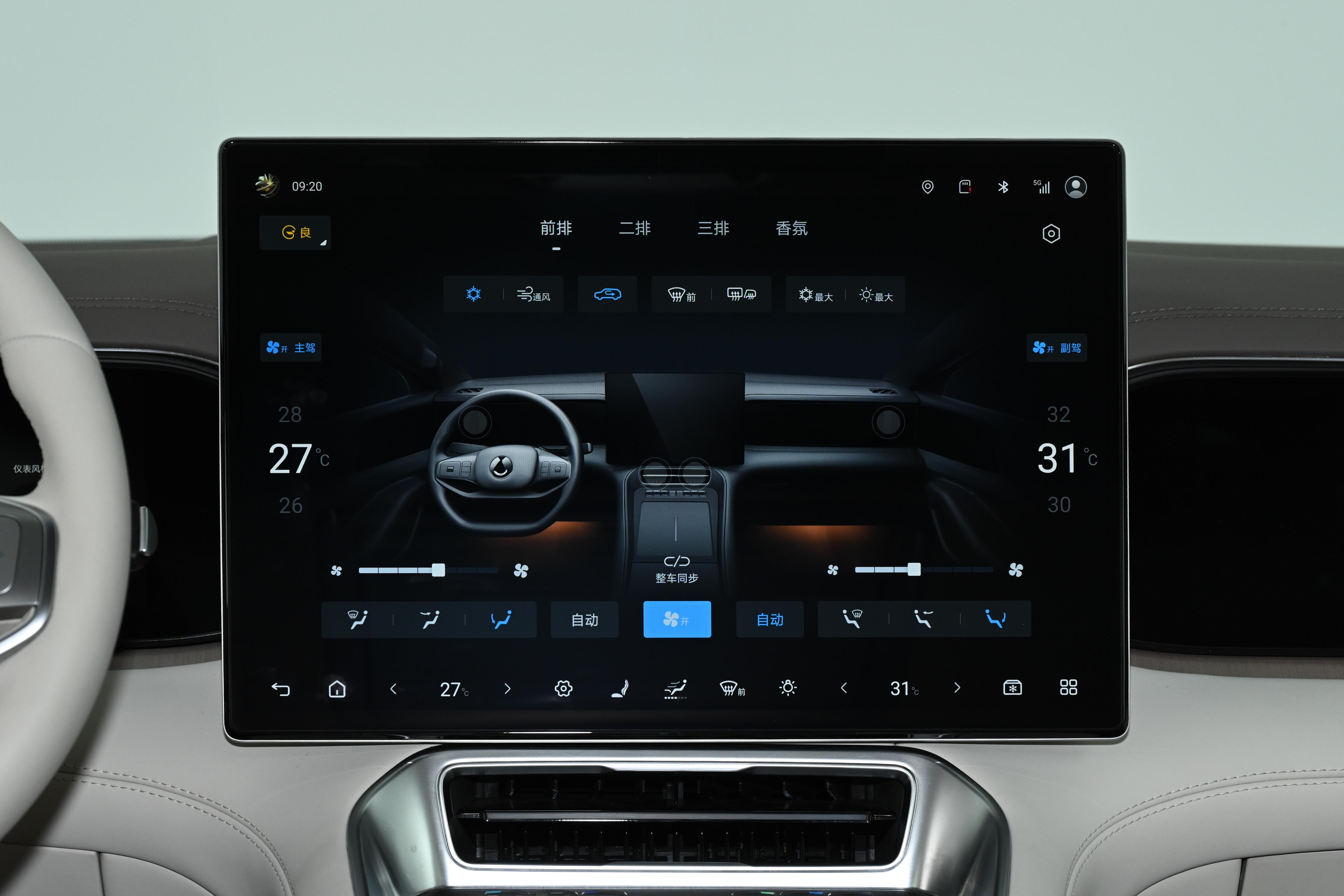 作为一名资深颜控,其实这款车开始吸引我的还在于它的外观,这车有派头,时尚又大气!超过5.2米的车长和近2米的车宽带来视觉上的震撼,外观的设计没有跟风学一些车,刻意做的浮夸张扬吸引眼球。而是简洁又充满东方韵味。“雪玉萤”车漆在雪地中呈现出浅灰质感,珠光效果在阳光下若隐若现,比普通的白色更气质。前脸设计灵感来自东方建筑,对称的灯组像展开的屋檐,在夜幕下看着更有辨识度。主动闭合式进气格栅可实用了,能有效优化空气动力学性能,而且还可以辅助发动机舱的温度管理,大冬天让车子可以更快启动。车身侧面,线条舒展流畅,21英寸低风阻轮毂抓地力强,就是高速行驶时,车身也稳当当的。悬浮式车顶让这个大块头少了几分笨重,多了几分灵动之气。隐藏式门把手精致美观,令车身看来平整光滑。车尾设计饱满厚重,贯穿式尾灯与前脸巧妙呼应,灯腔内部采用立体几何纹理,点亮后就是雨雪天的夜里也可以老远就看清,有效提升了安全性,颜值高又实用,就这外观,真的是稳稳被拿捏了。