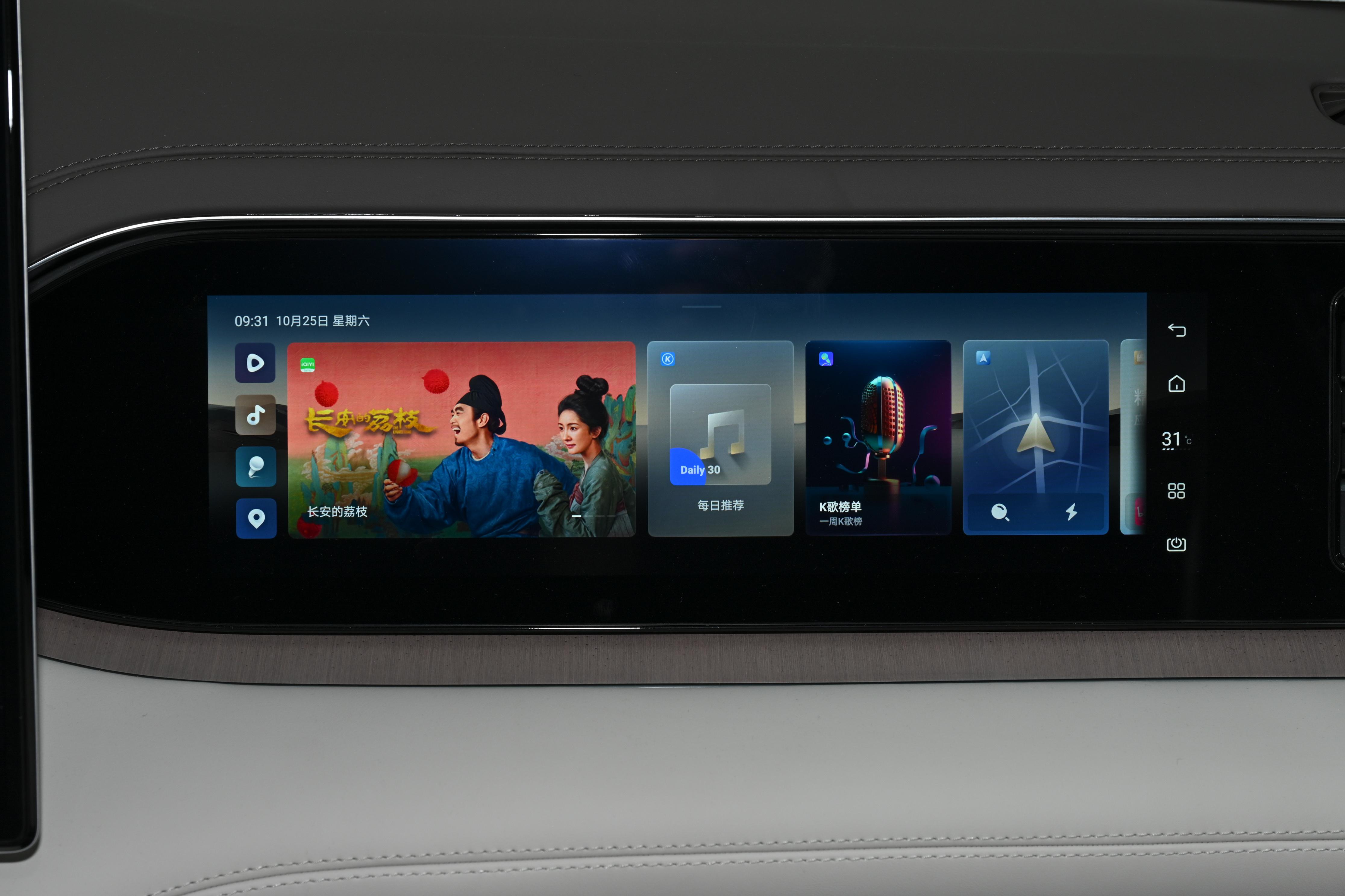 拉开车门坐进去,腾势N8L旗舰型内饰的那份科技感与豪华气息扑面而来。随手摸到的地方都是软乎乎皮质包裹,缝线也考究,而且别看是新车,我坐里面也没啥不好闻的味儿。朋友这车还选装了Nappa真皮座椅,摸着比我家那大皮沙发还带感,坐上去柔软又舒坦。要说吸引咱这科技控的,还得是13.2英寸全液晶仪表盘、17.3英寸2.5K中控大屏以及13.2英寸副驾娱乐屏组成的三联屏,这个可以说是座舱的科技核心,搭载DiLink车机系统,支持5G网络,高德地图,手机互联映射,面部识别等功能,我用着感觉挺顺手,没有卡顿的现象,不管是导航去棋盘山冰雪大世界,还是播放一段锡剧双推磨解闷,都丝滑流畅。语音小助手也挺灵个,支持四区域唤醒和连续性语音识别,朋友开车的时候,他在前面说导航去饭店,我坐在后面,就喊一声“你好,腾势,打开座椅加热,空调调到26度”小助手立马就照着做了,朋友开车也不用分心照顾我。而且大冷的天,都不用伸手去戳屏幕,动下嘴就成,还真是省心。旗舰型还标配了50英寸的AR-HUD增强现实抬头显示系统,这点我和朋友交换开车时,就感觉到它的便利了,各种关键的行车信息都直接投射在前方的风挡上,我就只管看着前面就成,这样也不用低头看仪表,在那结冰的路面上开车,也可以注意力更集中,开着也踏实多了。娱乐配置方面,后排那块17.3英寸的吸顶娱乐屏,在旅途中可是解闷伴侣,刷视频,看综艺节目,一路欢歌,再加上20个扬声器的杜比全景声帝瓦雷音响,128色的车内氛围灯,那效果和在无锡大剧院的感觉一样样。原本觉着有些孤寂漫长的冰雪之旅,听着歌看大片,眨眼就到,一点不乏味。