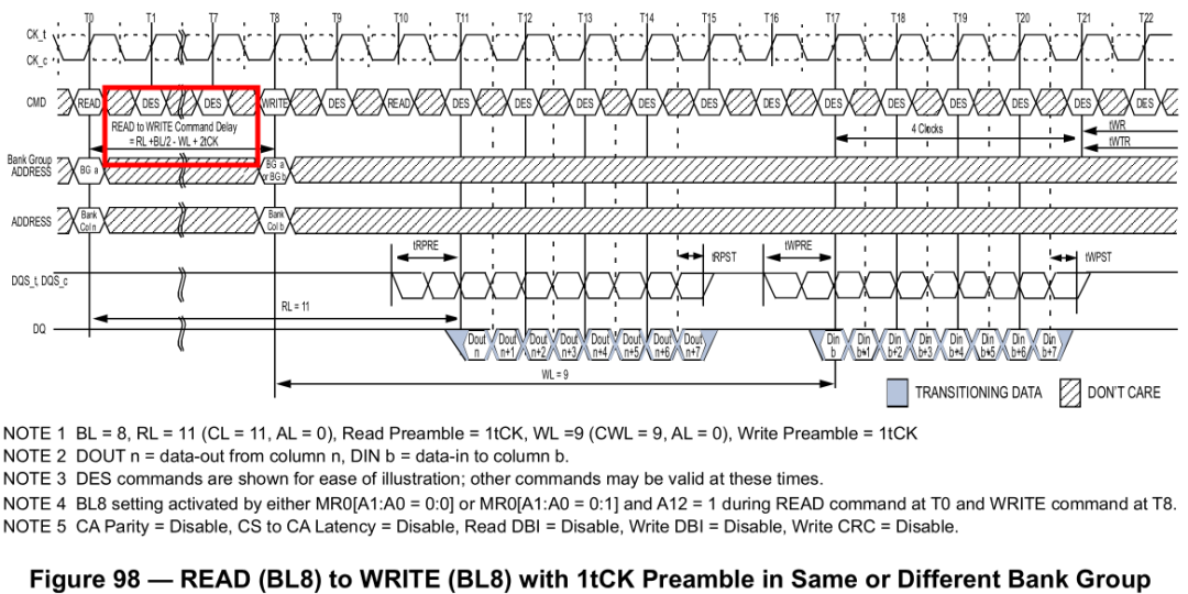 还有tWTR(Write to Read Delay) 和 tWR(Write Recovery Time),在2 tCK写Preamble需额外增加1个周期。