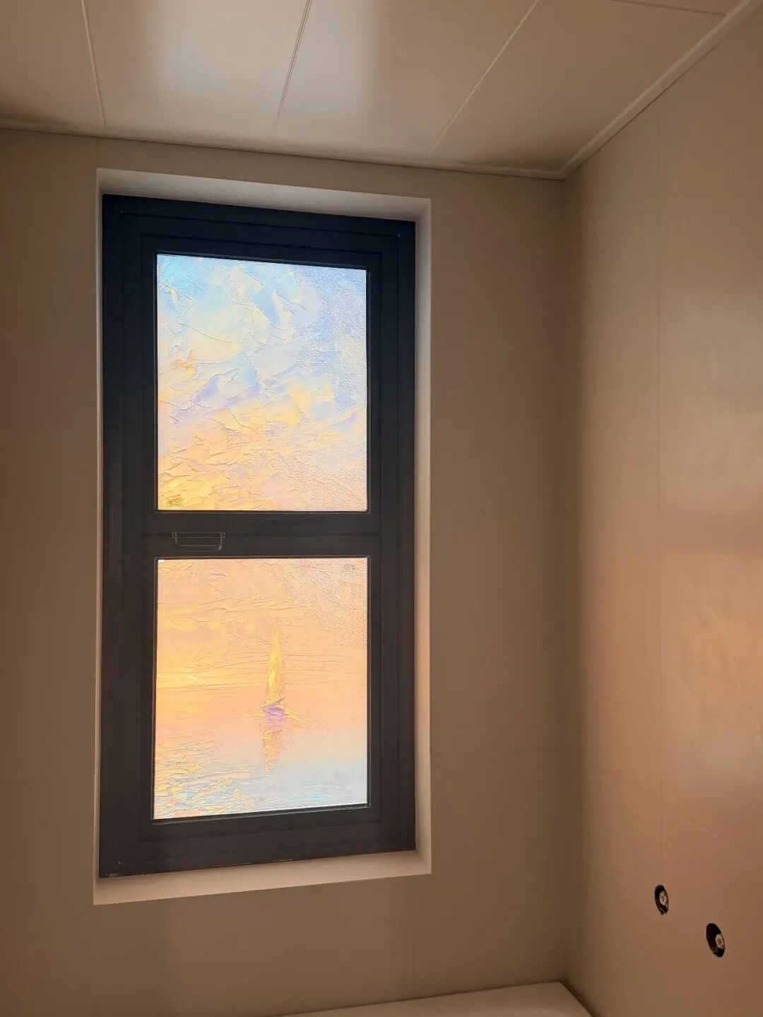 这种贴膜有很多种图案可选,海边、晚霞、小花朵,白天阳光透进来,光影自带滤镜,像坐拥一片海景,温暖治愈。