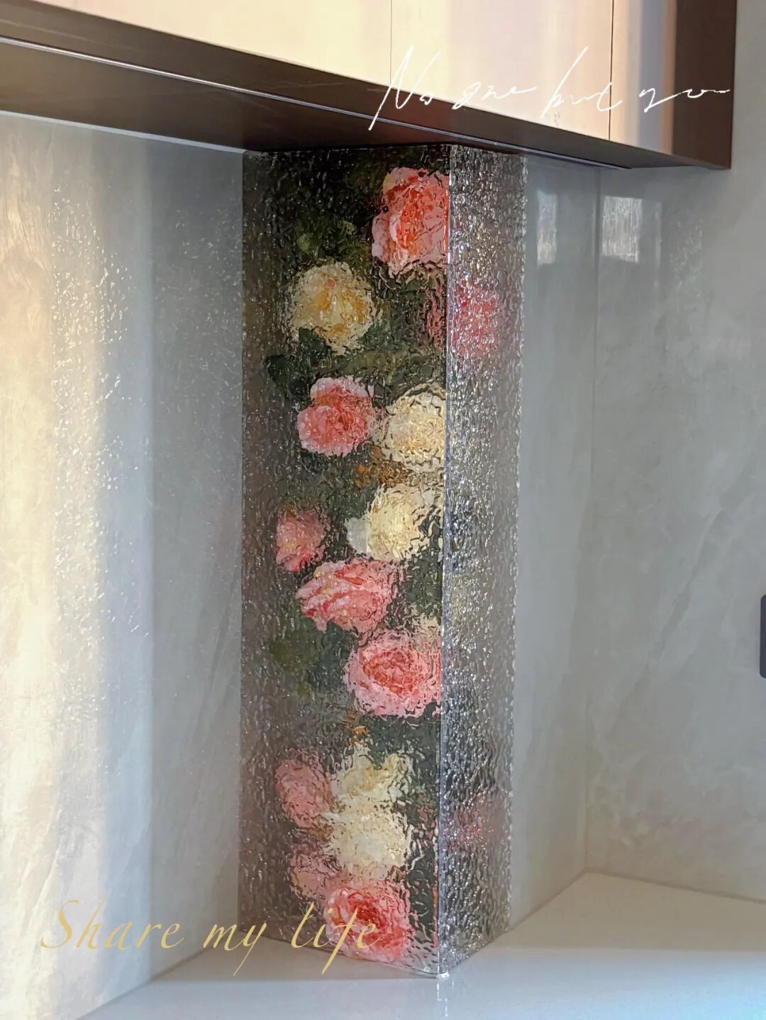 卫生间贴了这个油画玻璃膜,白天透光不透人,阳光透进来的光影感绝了,像自带滤镜一样。关键是不用打理,洗澡溅到水直接擦干就行,比窗帘省心一百倍。适合所有不想装窗帘的小户型。
