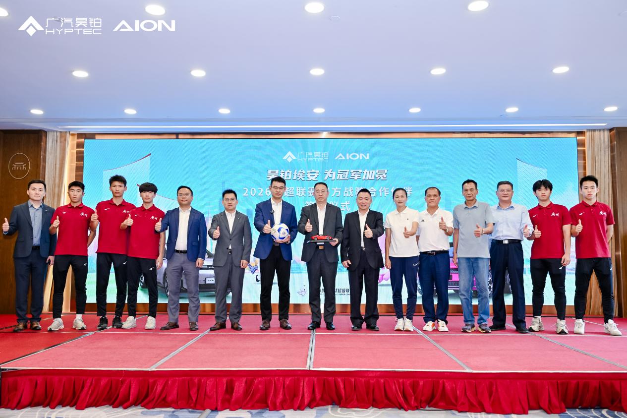【2026 年 4 月 21 日,广东迎宾馆】广汽昊铂埃安与 2026 广东省城市足球超级联赛(下称“粤超”)正式达成官方赞助合作,成为 2026 粤超官方战略合作伙伴。赛事期间,广汽昊铂埃安将为粤超21支球队提供全方位支持与保障,并联合赛事组委会,为本赛季最终夺冠球队赠送重磅车型,以冠军礼遇致敬绿茵荣耀,为南粤足球健儿的拼搏征程赋能。
