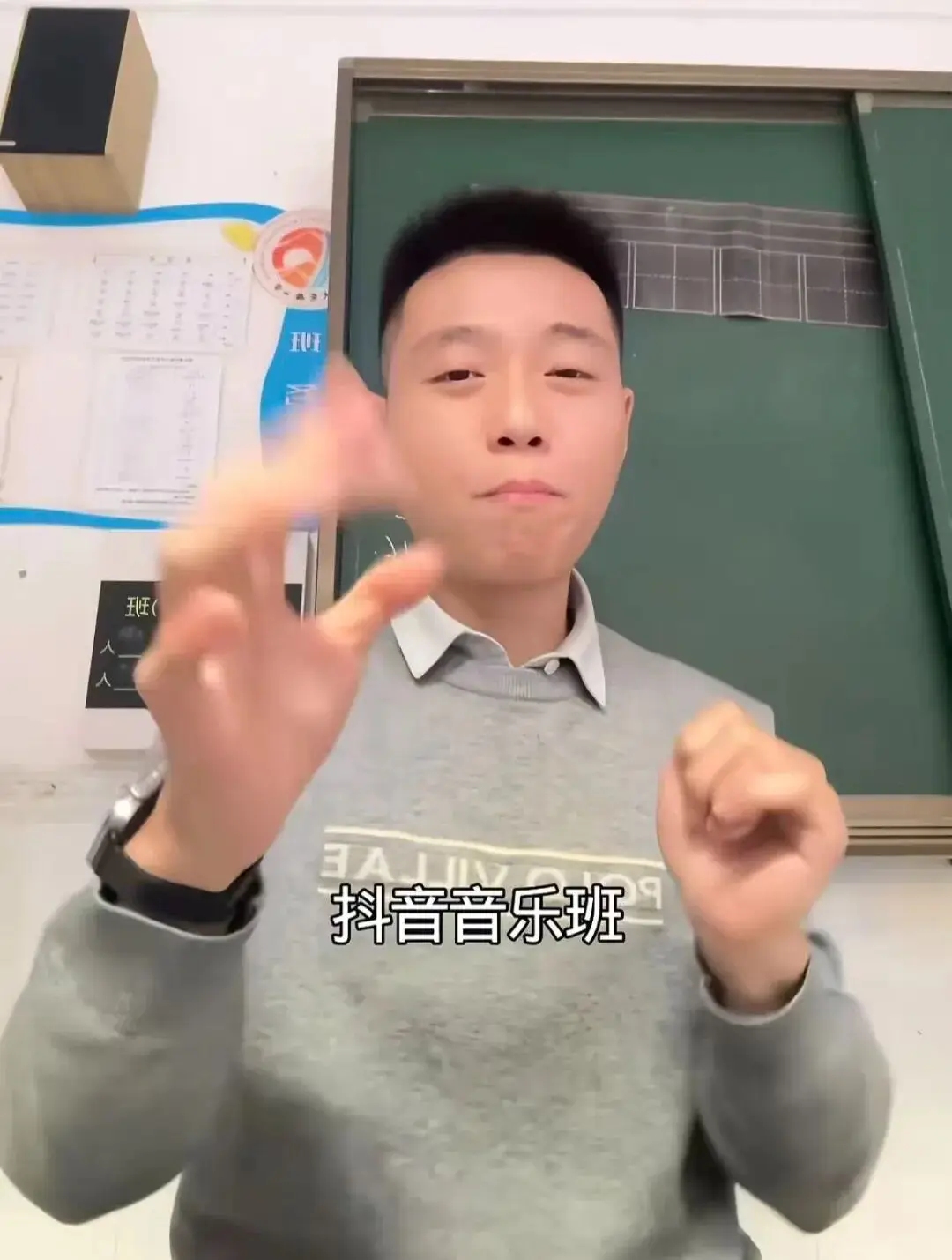 这个火遍全网的热梗,源头来自湖南宁乡一位名叫尹碧文的 00 后小学音乐老师。身为 “爱唱歌的小尹” 的他,只是想记录课堂上的日常互动 —— 手持鼓槌敲击节拍,用强节奏的 “喊麦” 方式点名,一次偶然的分享,让这条充满活力的课堂片段一夜斩获百万点赞,15 条视频累计收获超 1000 万点赞,粉丝从 12 万暴涨至 67.4 万。随着 “抖音音乐班挑战” 话题上线,简单易学的互动设计彻底点燃网友热情,五句核心口令搭配规整节奏,既没有复杂门槛,又自带洗脑 BGM,很快吸引 8 万多名大学生合拍同框,最高单条合拍点赞破 118 万。网友们的创造力被充分激发,不仅衍生出俄语、韩语等多语言版本,更有博主二创出 “抖音数学班”“抖音语文班”,让这场课堂互动突破了学科边界。