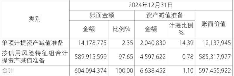 于2024年12月31日,组合计提减值准备的合同资产分析如下: