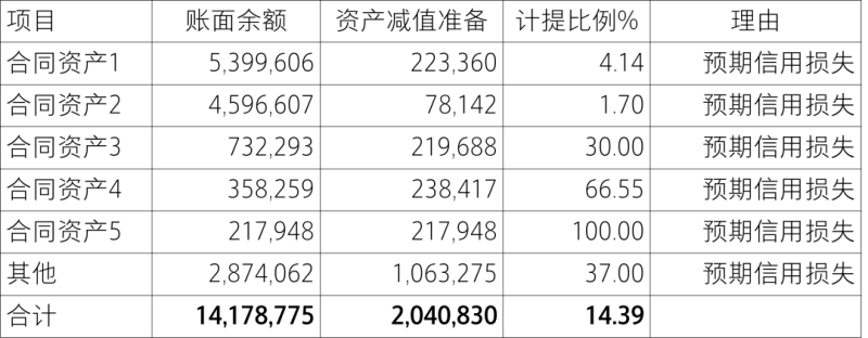 注:本集团向以上项目业主提供工程建设服务,该些项目由于资金紧张,本集团预计部分合同资产难以收回,因而相应计提减值准备。