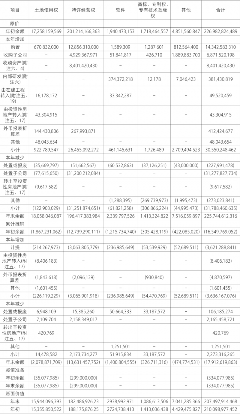 截至2024年12月31日,本集团无形资产特许经营权账面价值包含处于建设期PPP项目合同资产账面价值为人民币20,949,903,072元(截至2023年12月31日:人民币19,969,292,156元)。