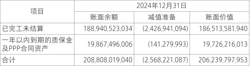 于2024年12月31日,本集团合同资产主要为未到合同收款期的质保金等款项,其中由PPP项目形成的合同资产金额为人民币766,357千元(2023年12月31日:人民币922,476千元)。