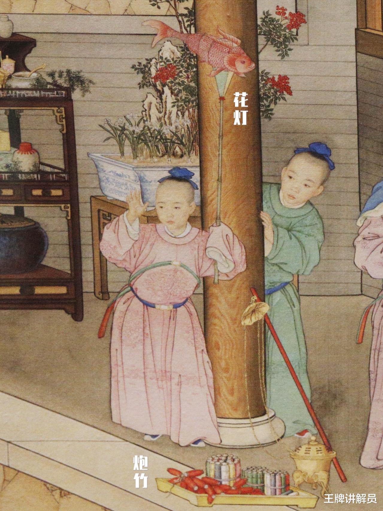 画中出现多种年俗,比如放鞭炮和玩花灯。